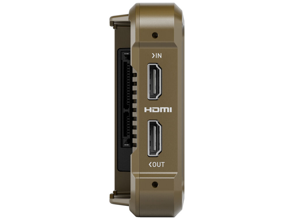 | Video vstupy / výstupy: | 1× HDMI 2.0 vstup (až 4K60p), 1× HDMI 2.0 výstup (až 4K60p); volitelně 12G-SDI přes Atomos Connect modul |