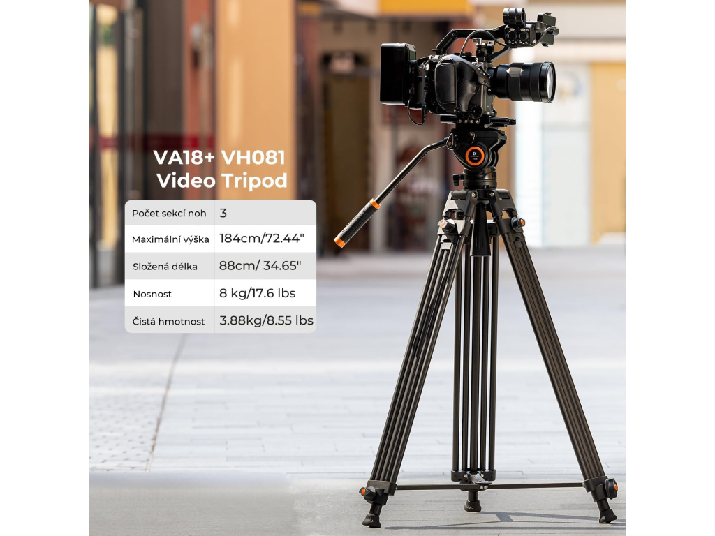 (BAZAR) K&F Concept video stativ VA18 s fluidní hlavou VH081 KF09.121