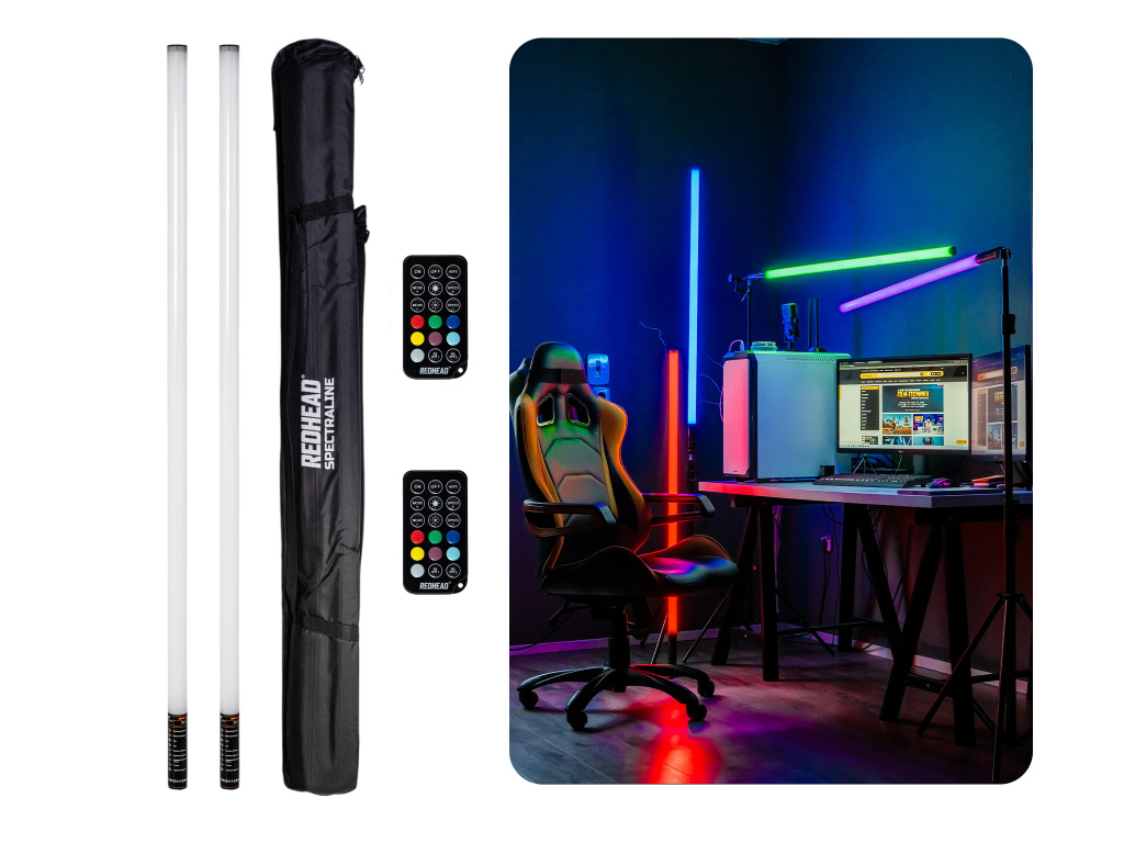 Redhead Spectraline je sada led barevných trubic pro foto a video účely. Ideální jako efektová trubice do pozadí scény "background" světlo. Obsahuje integrovanou 2000mAh baterií, kterou je možné dobíjet za chodu pomocí přiloženého USB-C kabelu. Součástí sestavy NEJSOU stativy a lze dokoupit dle vlastního zvážení délku požadovaných. Světla se ovládají pomocí přiložených dálkových ovladačů. Pro ovládání všech současně stačí pouze 1 ovladač. Součástí sestavy je pevná brašna a ochranné tubusy, které maximálně ochrání světlo.
