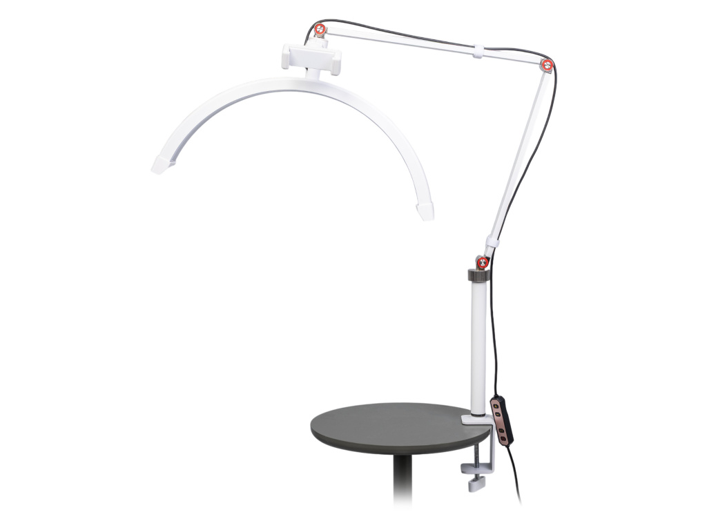 (ROZBALENO) Bílá kosmetická led lampa Half Moon Light na stůl (řasy, tetování, makeup, obočí) 20W - Bílá varianta, 10 úrovní, 3 úrovně teploty