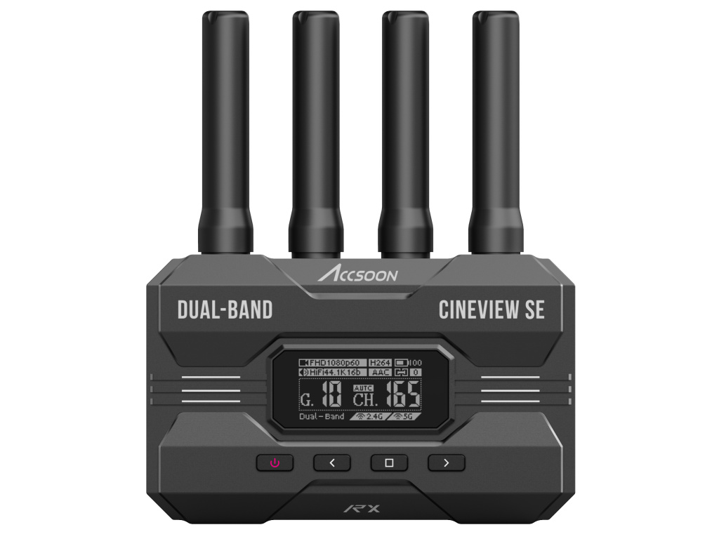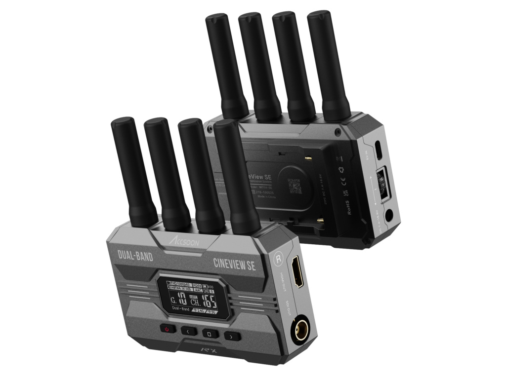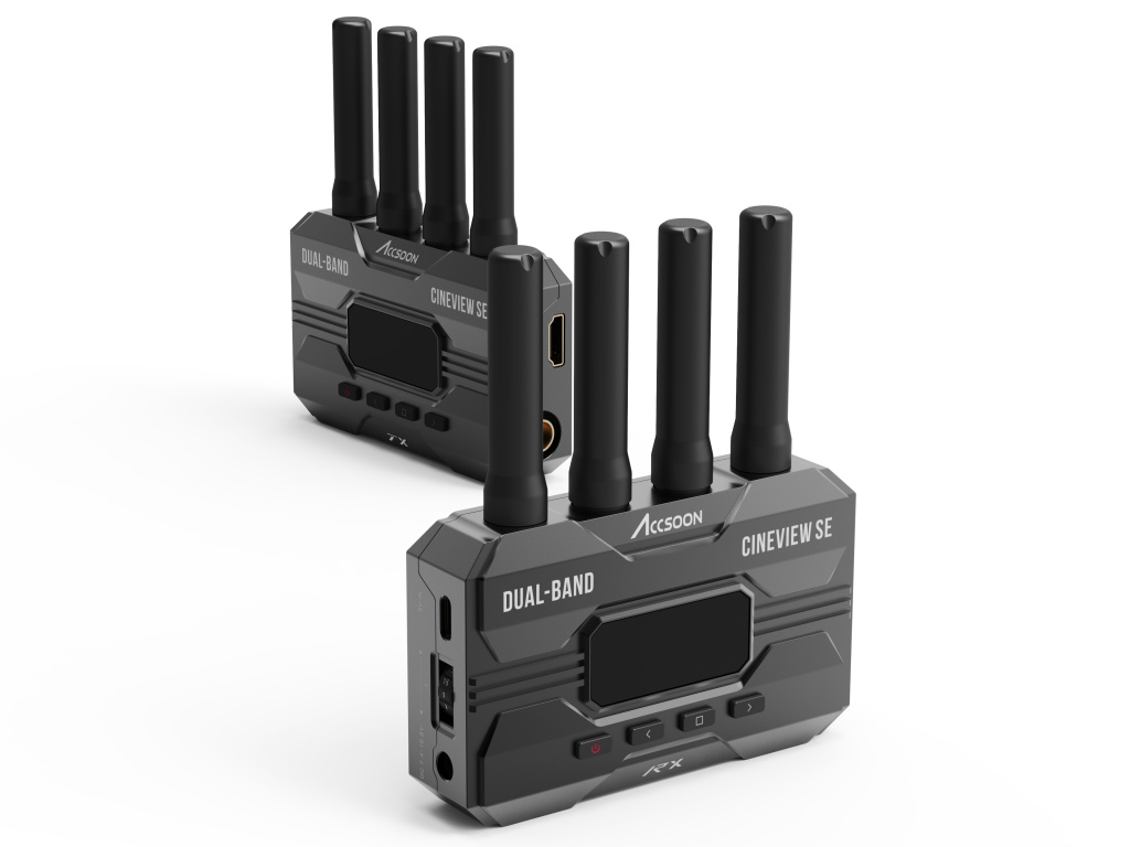 Accsoon CineView HE (RX+TX) je HDMI dvoupásmový bezdrátový kamerový vysílač a přijímač s dlouhým dosahem, který obsahuje nový port USB-C na přijímači pro přímé živé vysílání...