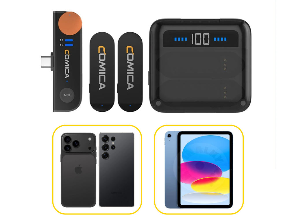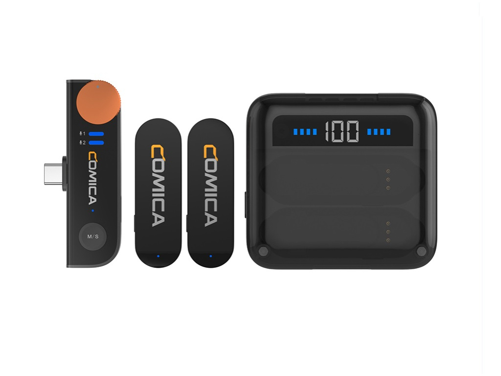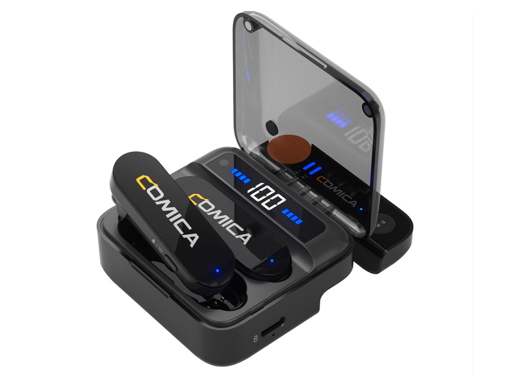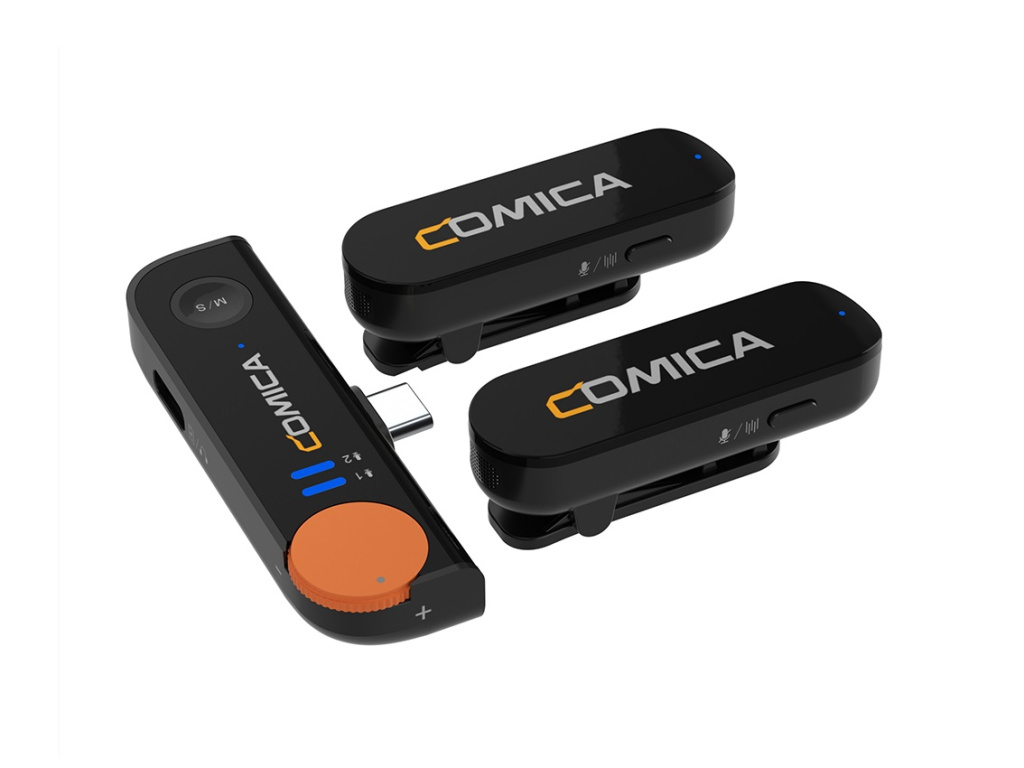 Sada dvou mini bezdrátových mikrofonů pro mobilní video a mobilní režiséry, mikrofóny bezdrátové pro nahrávání rozhovorů, podcastů od předního výrobce mobilních mikrofonů Comica...