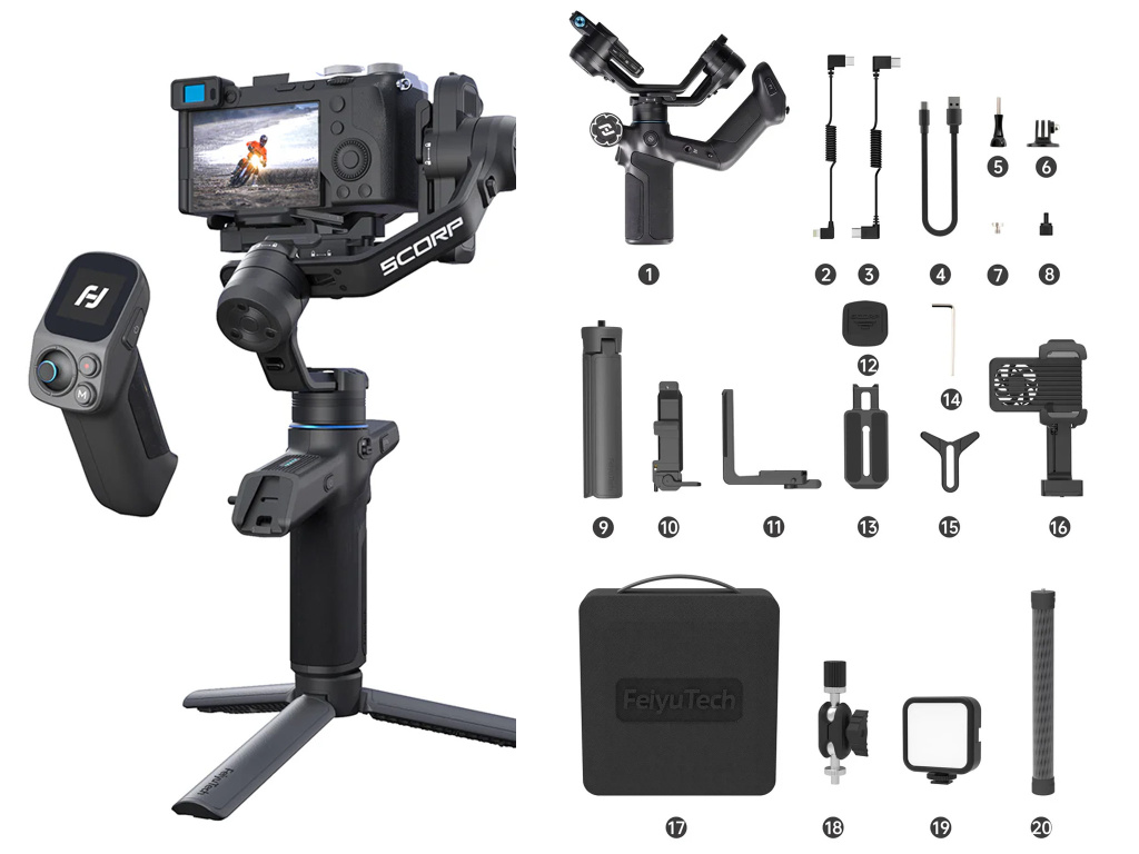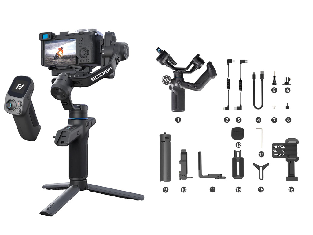 (ROZBALENO) Feiyu SCORP Mini 3 Pro - Profesionální gimbal pro bezzrcadlovky, smartphone, akční kamery Kit Bundle