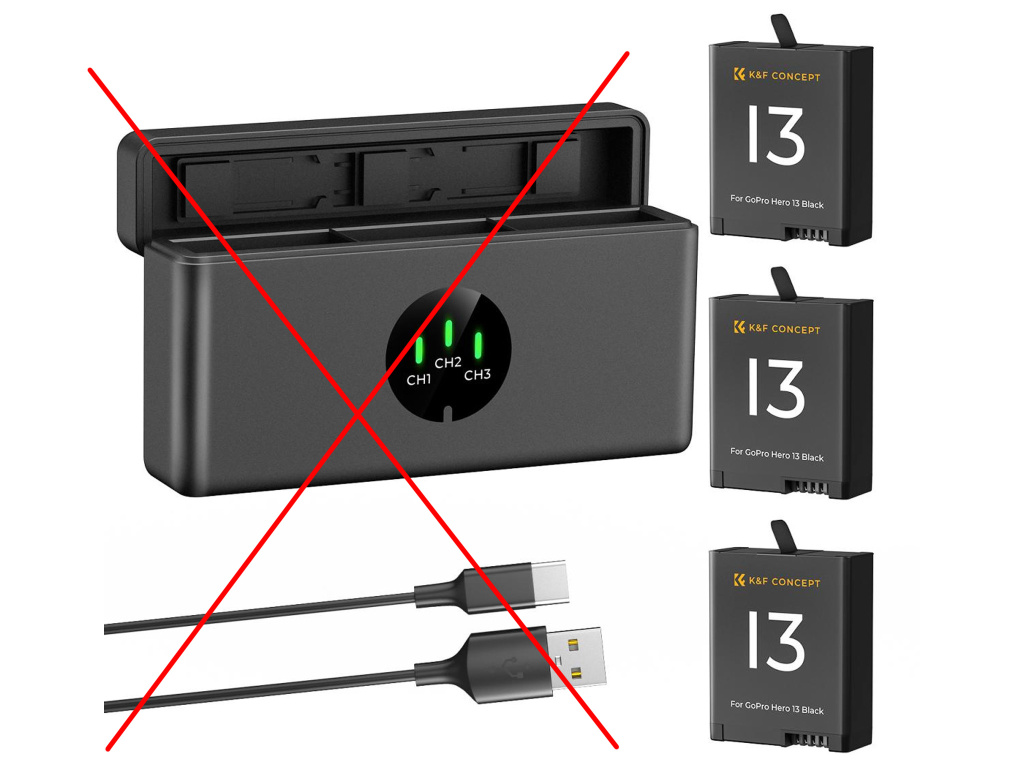 Sada dvou náhradních baterií a nabíječky pro GoPro HERO 9 Black i GoPro HERO 10, GoPro HERO 11 a GoPro HERO 12 plně kompatibilní s vaším originálním GoPro.