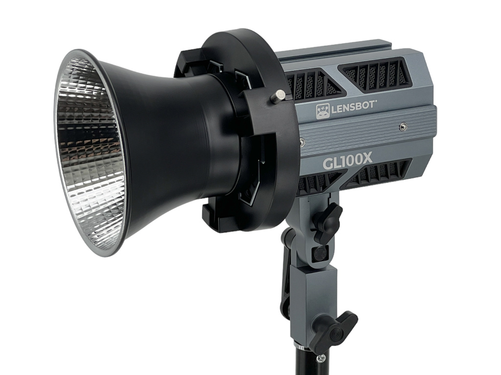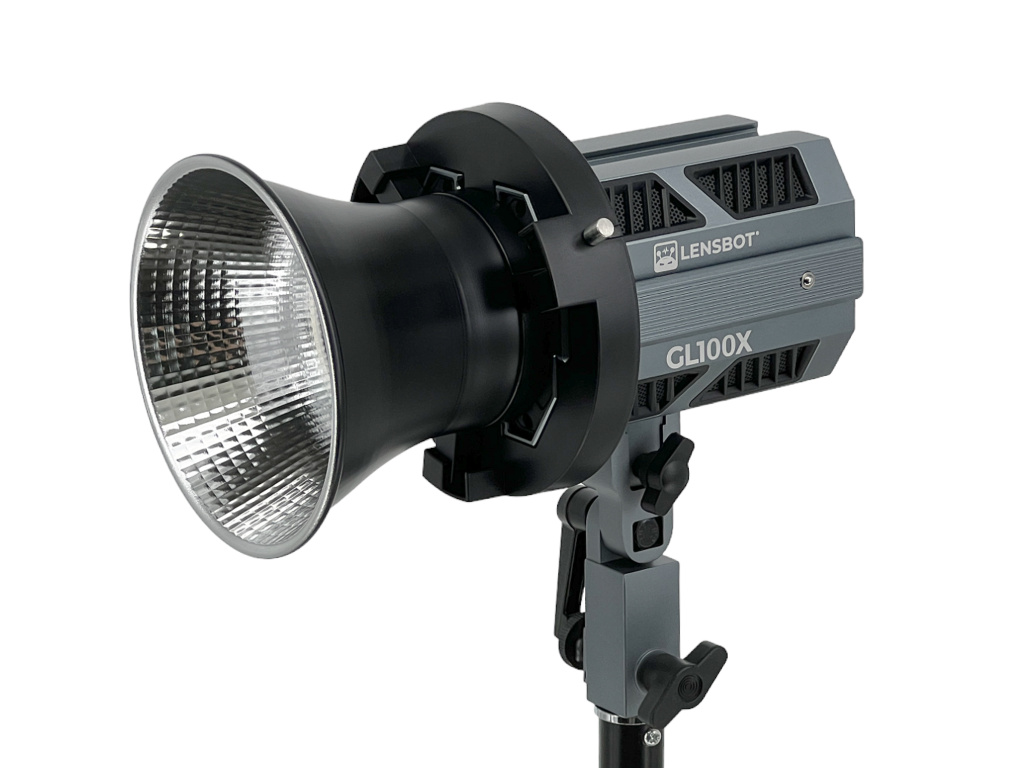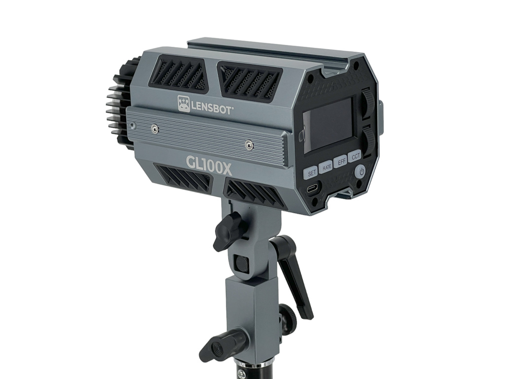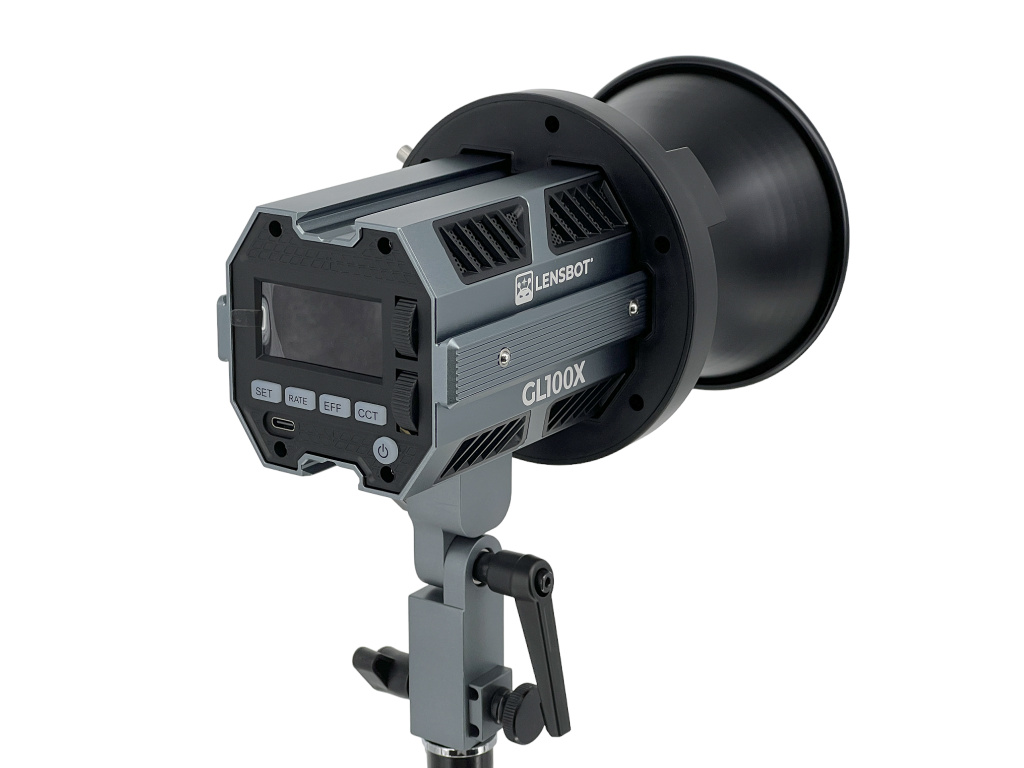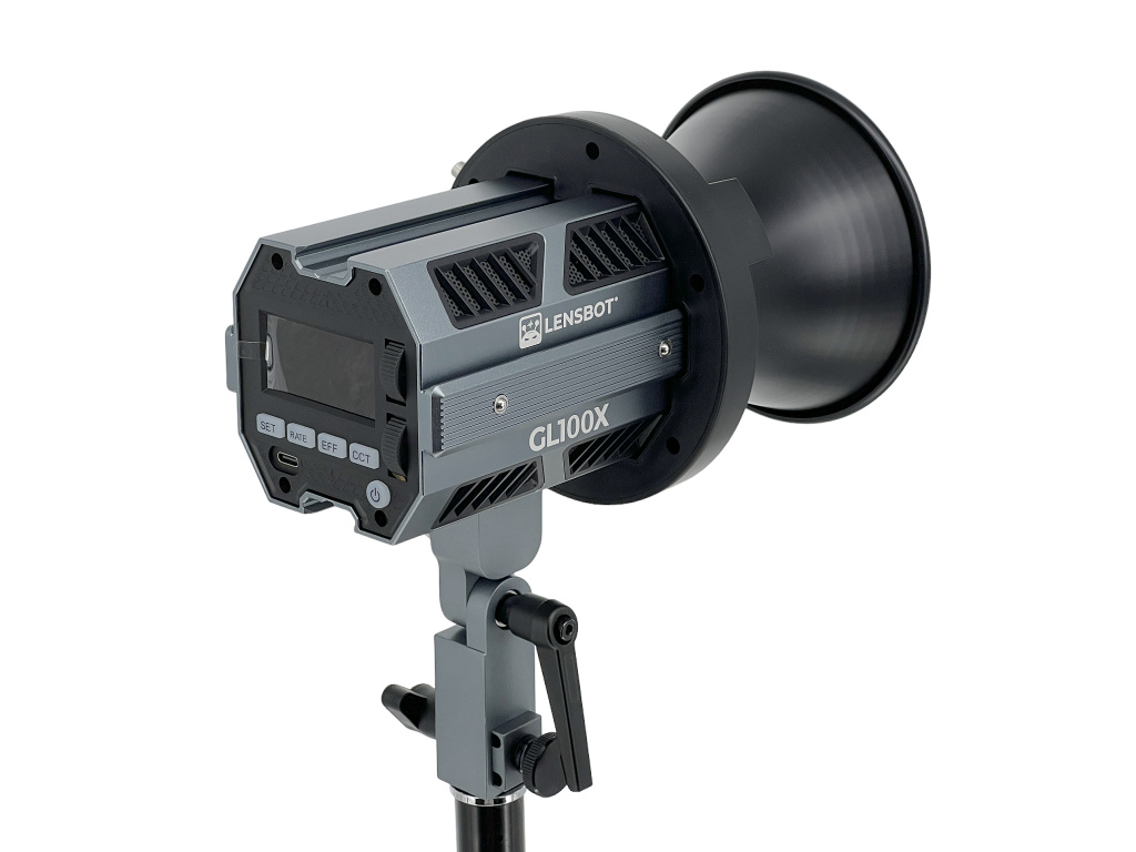LENSBOT GL100X je revoluční COB LED světlo. Ze série světel LENSBOT GL60/60RGB/GL100 je model GL100X nejvýkonnější (120W) a dosahuje svítivosti až 25 645 (6500K) luxů na 1 metr.