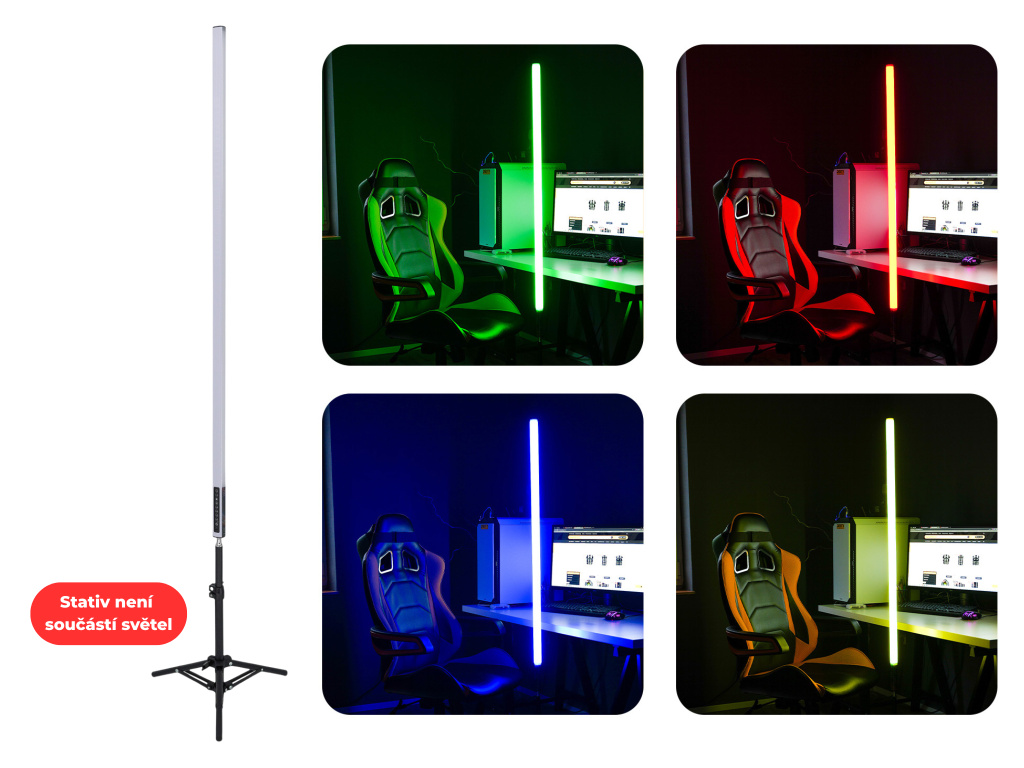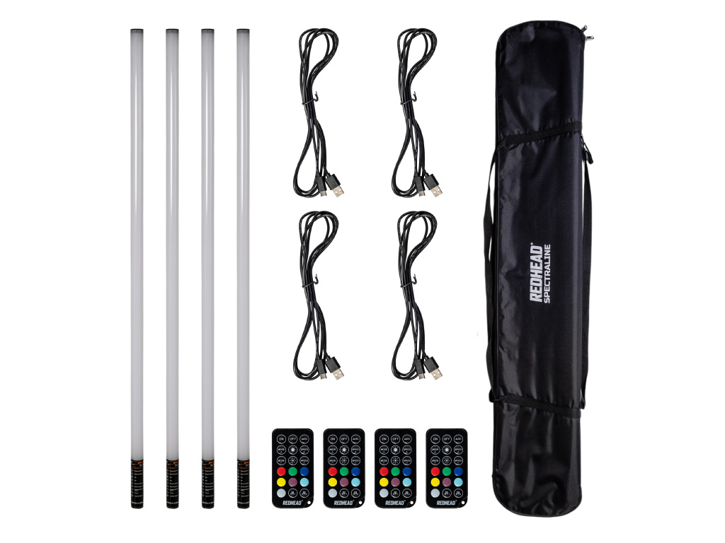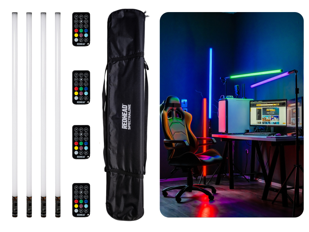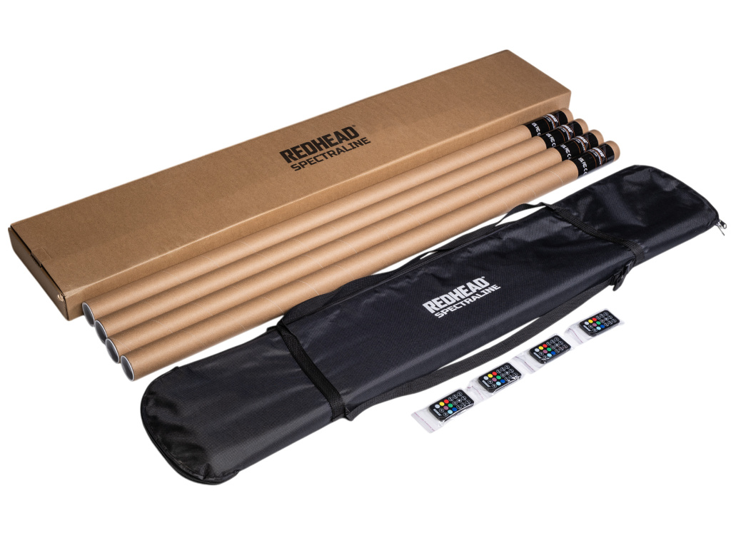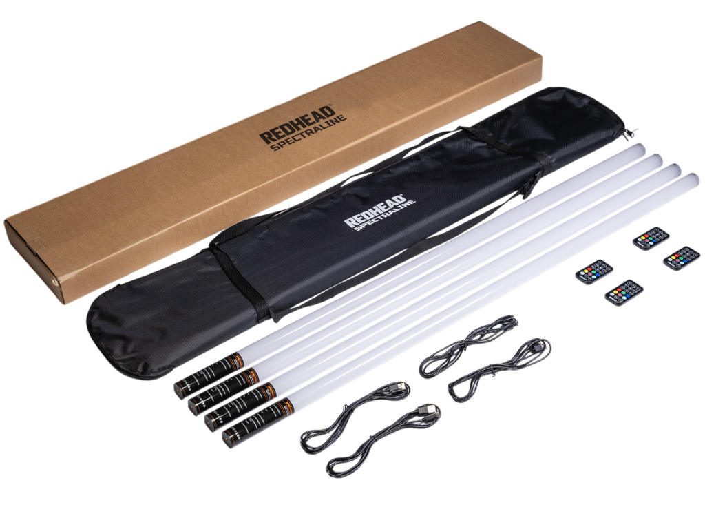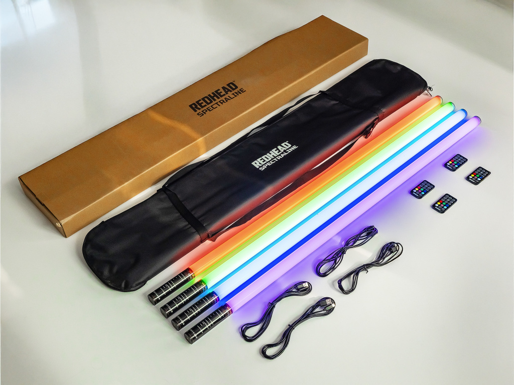 Redhead Spectraline je sada led barevných trubic pro foto a video účely. Ideální jako efektová trubice do pozadí scény "background" světlo. Obsahuje integrovanou 2000mAh baterií, kterou je možné dobíjet za chodu pomocí přiloženého USB-C kabelu. Součástí sestavy NEJSOU stativy a lze dokoupit dle vlastního zvážení délku požadovaných. Světla se ovládají pomocí přiložených dálkových ovladačů. Pro ovládání všech současně stačí pouze 1 ovladač. Součástí sestavy je pevná brašna a ochranné tubusy, které maximálně ochrání světlo.
