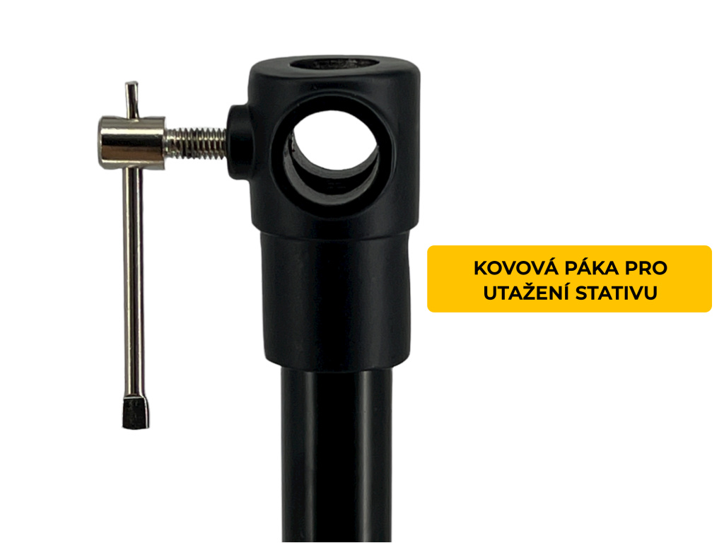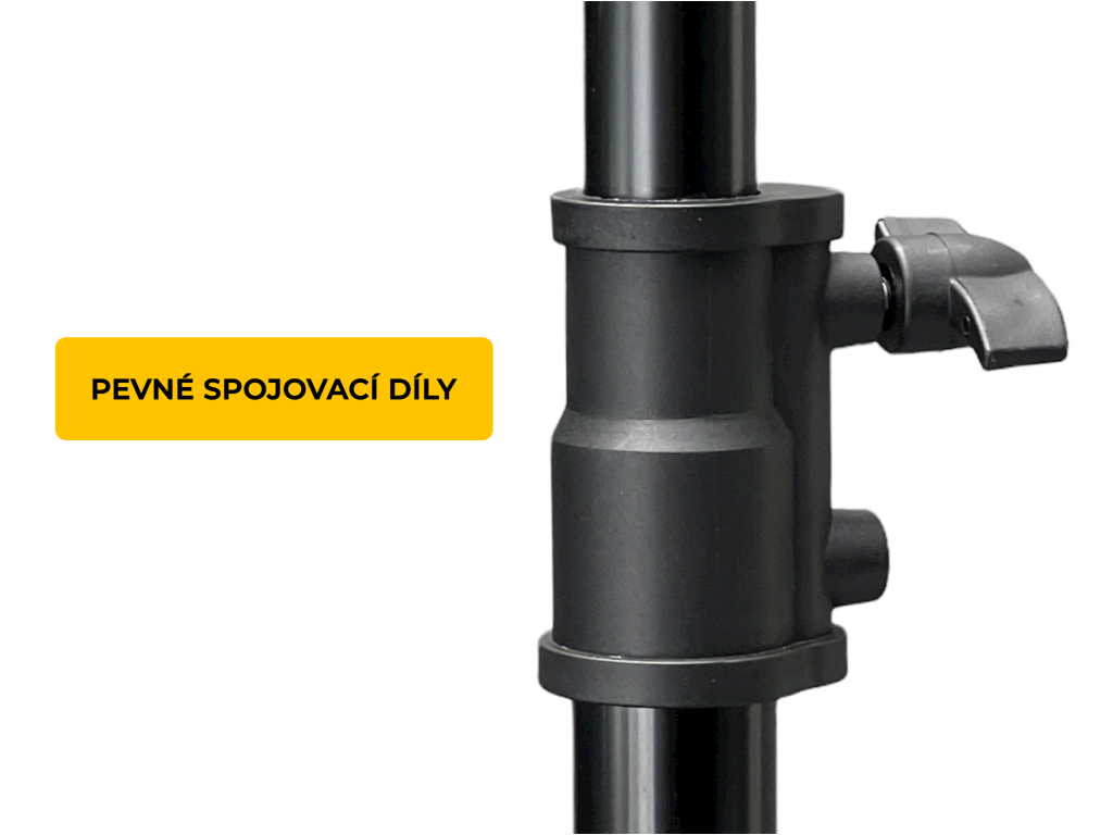 Solidní konstrukce pro upevnění fotografického pozadí je specifická v možnosti nastavení šířky středové tyče. Díky systému teleskopické tyči je práce s konstrukcí extrémně rychlá a hlavně flexibilní. Můžete si prostě nastavit šířku pozadí od 1 metru do 3 metrů. To celé je navíc vyrobené z velmi kvalitních dílů.