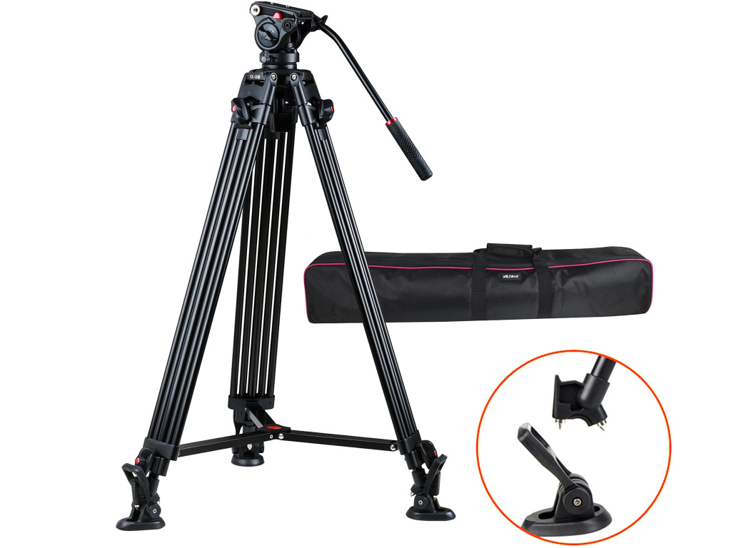 Robustní stativ Viltrox VX-18M se dodává s fluidní pan/tilt hlavou VT-01, rychloupínací destičkou se závity 1/4"-20 a 3/8"-16, sadou gumových nohou a přepravní brašnou. Nosnost hlavy je cca 6 kg; stativ sestává ze tří sekcí a je vybaven vodováhou. Hlava umožňuje pohyb 360° v horizontální a +90°/-75° ve vertikální ose. Madlo lze umístit na libovolnou stranu hlavy.