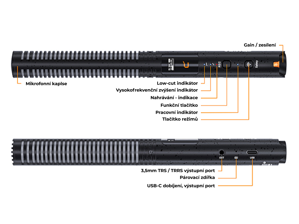32GB interní paměť: Mikrofon je vybaven 32GB interní pamětí, která umožňuje uložit až 40 hodin nekomprimovaného zvuku. Tato funkce zajišťuje bezpečné zálohování nahrávek během natáčení a poskytuje tvůrcům větší jistotu při práci.