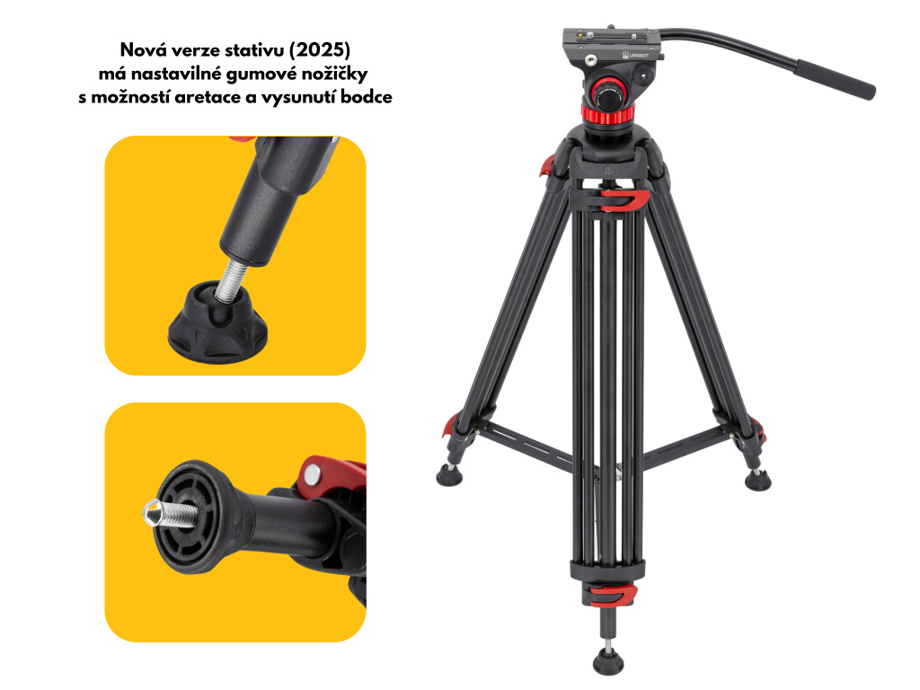 (ROZBALENO - POUZE NOHY) LENSBOT RAZOR III - video stativ s nastavitelnou fluidní hlavou 182cm, 10kg nosnost, pan/tilt nastavení
