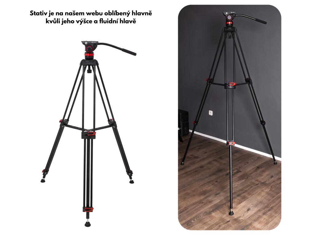 | Videohlava: | Fluidní - nastavitelná horizontální i vertikální osa |