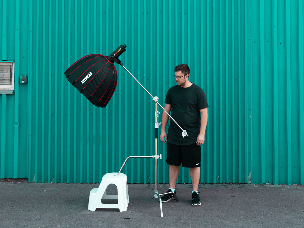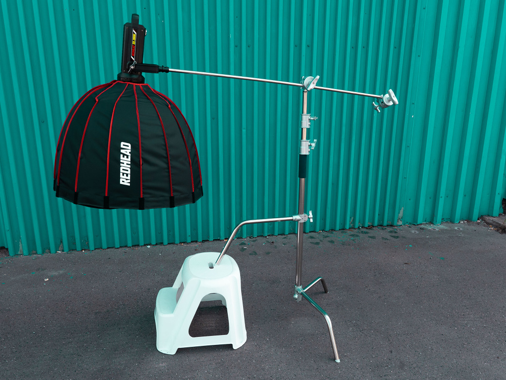 Teleskopické rameno pro upevnění softboxů, difuzérů a dalšího foto příslušenství.