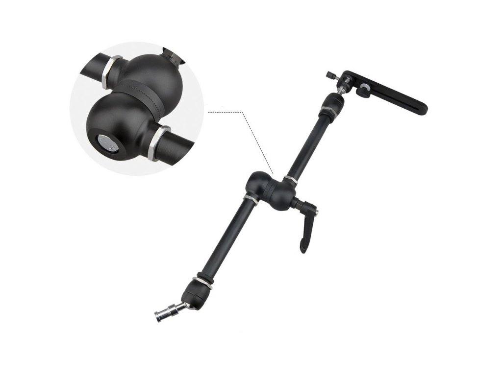 Profesionální kloubové rameno, magic arm s nosností až 5 kg. Ideální je jej používat v kombinaci se svorkou. Konce ramene (čepy 5/8") lze naklánět až o 90° a celkové rameno (středový kloub) lze protáčet o 360°. Rameno je ideální používat se svorkou o vysoké nosnosti. Světlo na úvodní fotografii je Redhead RGB-60 a svorka jej bez problému unesla.