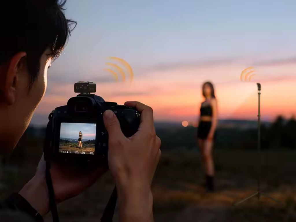 Jedním tlačítkem můžete snadno přepínat mezi vysílačem a přijímačem. Krátkým stisknutím spustíte párování pro okamžité bleskování mimo fotoaparát. |