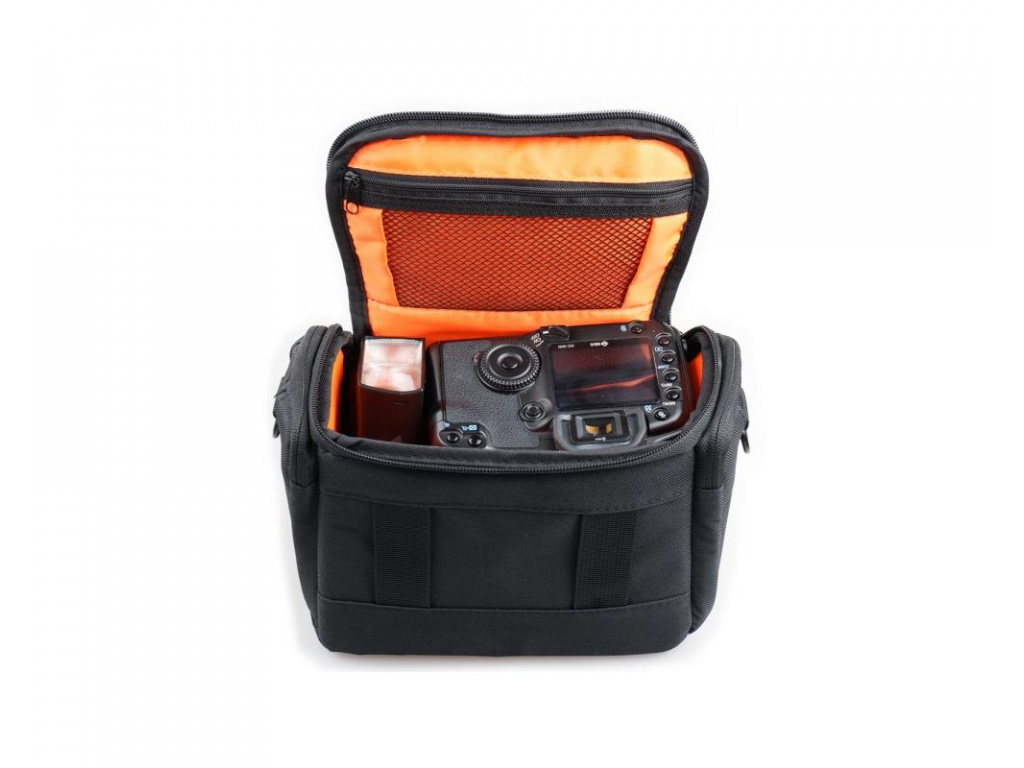 Fotografická brašna Cube R10 od společností Camrock. Co od brašny můžete očekávat: kombinace polyesteru 950D, polyesteru 180D Ripstop, nylonu 2010D TXP a PE pěna, kompaktní design a malé vnější rozměry, odnímatelný popruh, pohodlná rukojeť, stěny brašny vyztužené pěnovou izolací, kovové přezky a upevnění na pásek. Úložný prostor: velký prostor pro kamery s nastavitelnou přepážkou, dvě boční kapsy na zip a vnitřní síťka pro drobnější příslušenství. Co se týče kapacity, tak se do ní vejde: středně velká kamera (např: Canon EOS 650D), včetně objektivu a dalšího příslušenství jako: blesk, baterie, filtry, paměťové karty, apd.