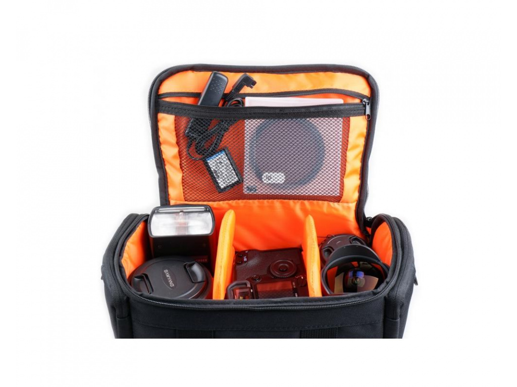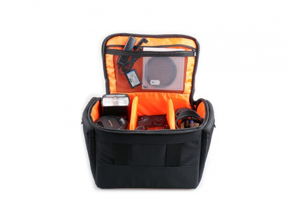 Fotografická brašna Cube R30 od společností Camrock. Co od brašny můžete očekávat: kombinace polyesteru 950D, polyesteru 180D Ripstop, nylonu 2010D TXP a PE pěna, kompaktní design a malé vnější rozměry, odnímatelný popruh, pohodlná rukojeť, stěny brašny vyztužené pěnovou izolací, kovové přezky a upevnění na pásek. Úložný prostor: velký prostor pro kamery s nastavitelnými přepážky, dvě boční kapsy na zip a vnitřní síťka pro drobnější příslušenství. Co se týče kapacity, tak se do ní vejde: středně velká kamera (např: Canon EOS 650D), včetně dvou nebo tří objektivů a dalšího příslušenství jako: blesk, baterie, filtry, paměťové karty, apd.