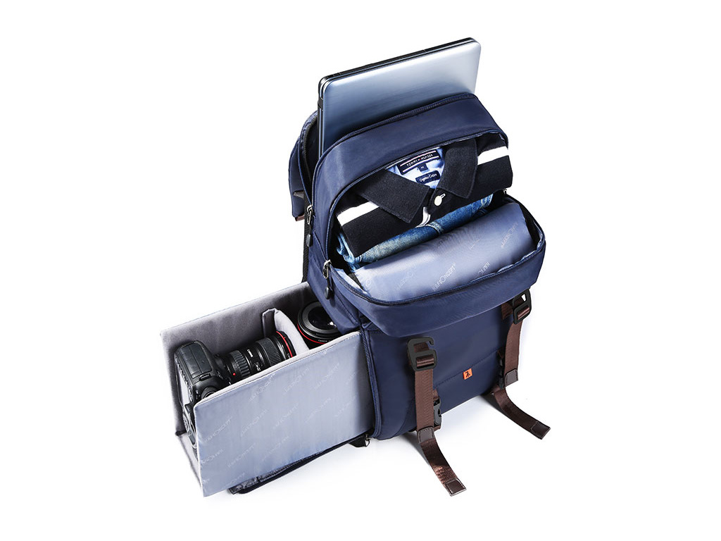 Fotografický nepromokavý batoh s polstrovanou přihrádkou na notebook nebo tablet (až 14").Boční přihrádka je koncipovaná pro rychlý a snadný přístup k vybavení. Zároveň umožňuje snadno umístit a zafixovat vaše přenosné příslušenství a chrání vaše vybavení před nárazy. Horní část je koncipována pro uskladnění osobních věcí oblečení a dalších osobních drobností.
