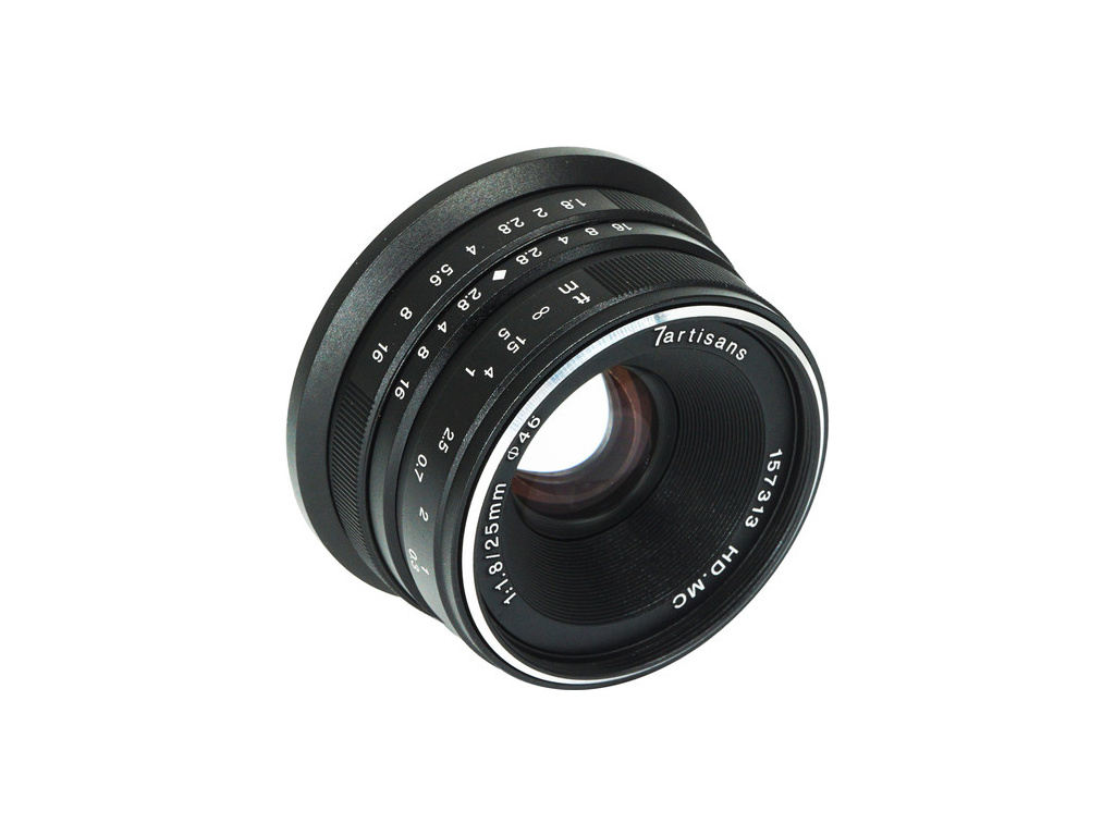 APS-C objektiv 25 mm pro EOS-M Mount kamery, od společností 7Artisans. Optická konstrukce objektivu se skládá ze 7 prvků v 5 skupinách, ovladatelný rozsah clony je od f/1,8 do f/16. Objektiv disponuje 68° pozorovacím úhlem, 12-lamelovou clonou a manuální clonou/ostřením. Minimální zaostřovací vzdálenost je 18 cm. Objektiv je vhodný pro EOS-M Mount kompakty a bezzrcadlovky značky Canon.