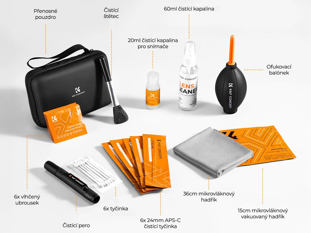KF Concept 25v1 profesionální čistící sada pro pro objektivy a kamery (APS-C senzory) KF08.078