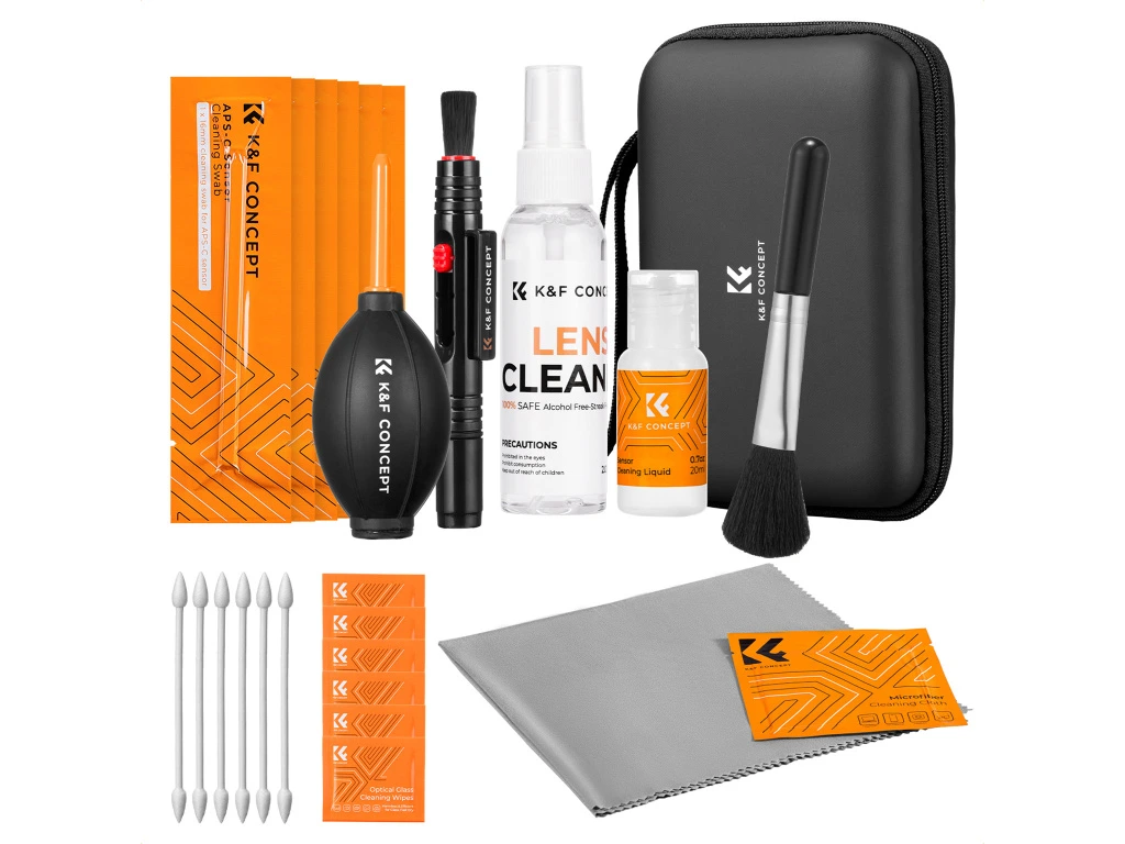 KF Concept 25v1 profesionální čistící sada pro objektivy a kamery je navržena pro náročné fotografy a filmaře, kteří chtějí udržet svou techniku v perfektním stavu bez rizika poškození. Pevné pouzdro přehledně organizuje veškeré příslušenství, včetně čistícího štětce, ofukovacího balónku, čistících per a tyčinek určených i pro snímače. Dvě čistící kapaliny o objemu 20 ml a 60 ml umožňují šetrné, ale účinné odstranění nečistot, zatímco vlhčené ubrousky a mikrovláknové hadříky ve dvou velikostech zajistí finální dočištění bez šmouh. Tato sada je ideální volbou pro pravidelnou údržbu objektivů, filtrů, snímačů i kamerové techniky doma, ve studiu i na cestách.