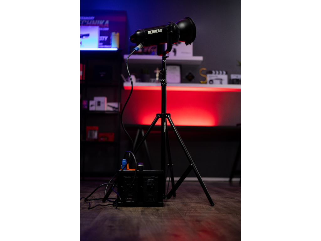 Redhead DX-5000 je extrémně výkonné 500W COB LED světlo s teplotou 5600K. Intenzita světla je až 15 000 luxů na 1 metr. CRI je samozřejmě 95+. Světlo je napájené že sítě, nebo 4 x V-mount baterie.