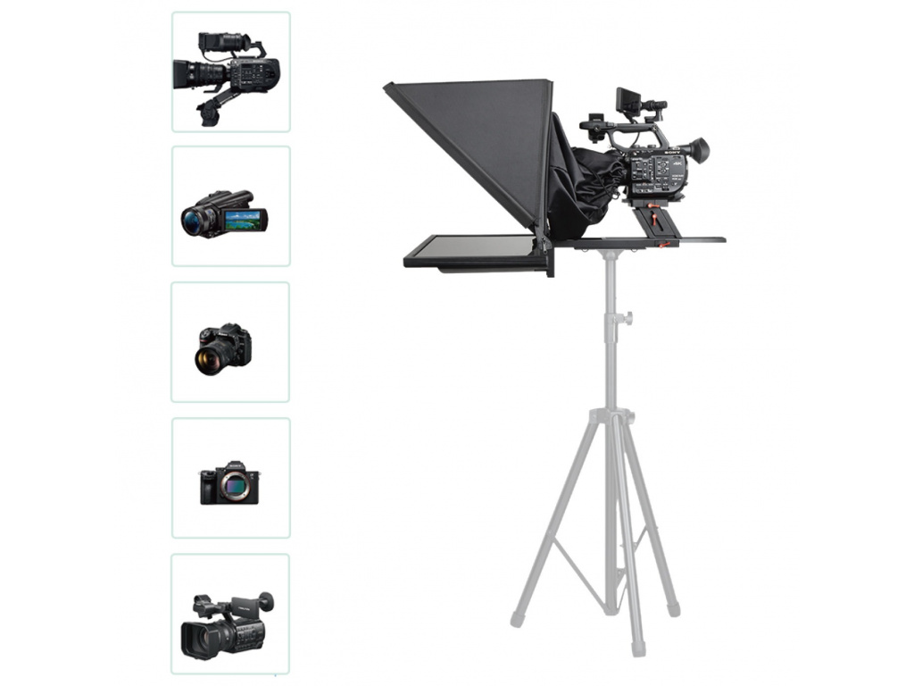 Nahrávejte profesionální, textové prezentace, nebo vysílejte video s touto sadou T22 Teleprompter od společnosti Desview díky 21,5" monitoru a sklu pro odraz paprsků 70/30. Monitor s rozlišením 1920 x 1080 se odráží na ultračistém optickém skle, což zajišťuje čitelnost vašeho přepisu. Přiložený držák PTZ umožňuje nastavit výšku teleprompteru tak, aby vyhovovala DSLR fotoaparátům, videokamerám a filmovým kamerám Kompozitní vstupy AV, VGA, USB Type-A, BNC a HDMI poskytují širokou škálu konektivity.