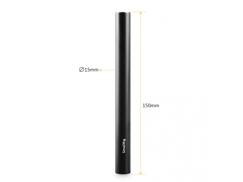 SmallRig 1050 sind Rigstangen mit einer Länge von 15 cm und einem Durchmesser von 15 mm. Die Stangen entsprechen dem M12-Standard und sind vollständig aus Aluminium gefertigt.