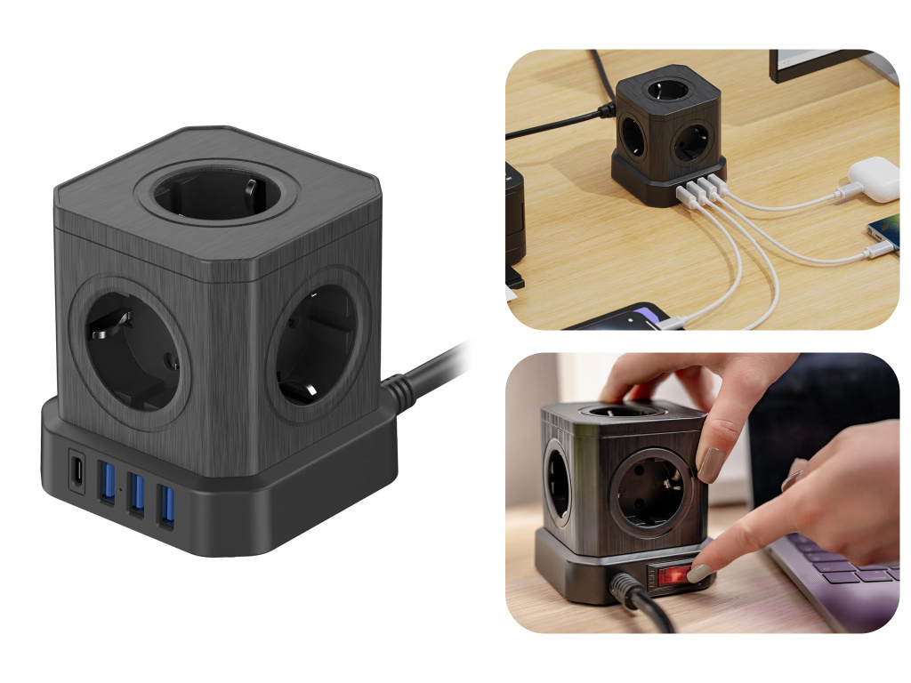 Mussten Sie sich schon einmal entscheiden, welches Gerät Sie zuerst aufladen wollen, weil Sie keine Steckdosen zur Verfügung hatten? Dieser Würfel wird dieses Problem lösen. An Bord finden Sie: