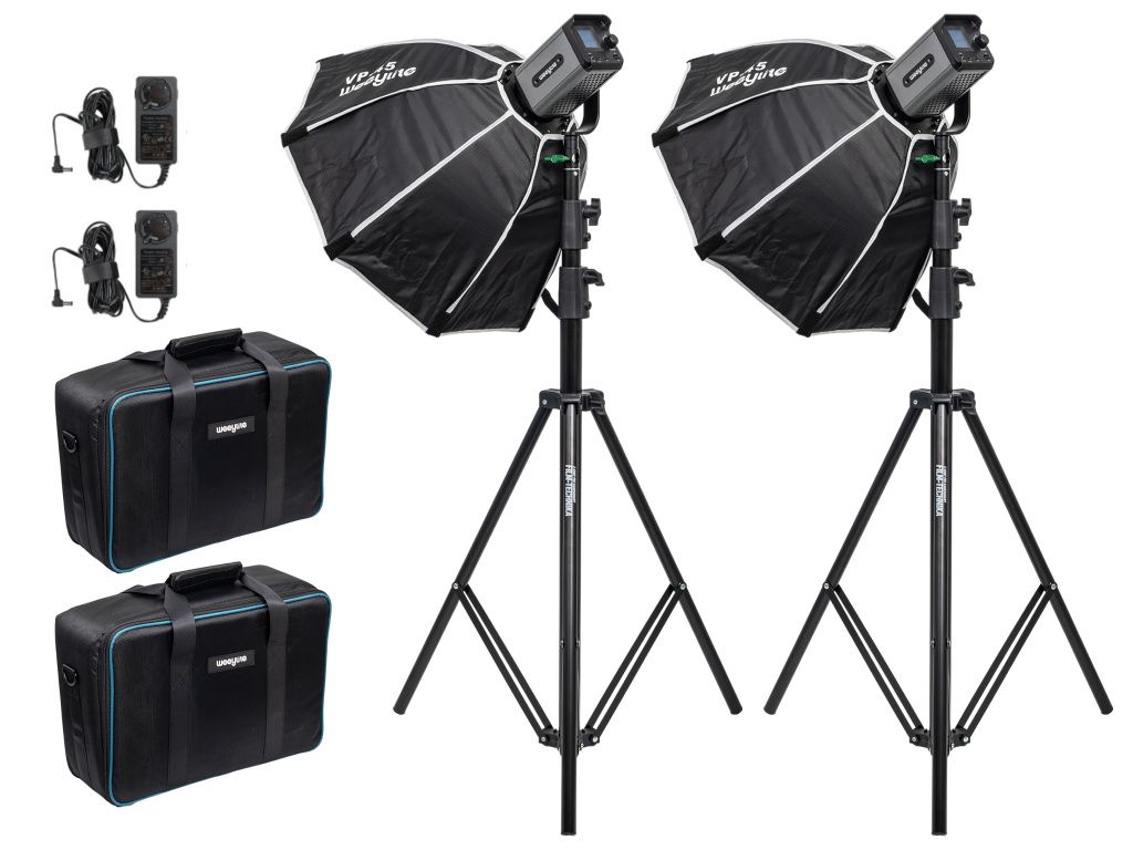 Set 2x Weeylite Ninja 300 - COB LED licht + 2x softbox, 2x stativ, 2x Bowens adapter
