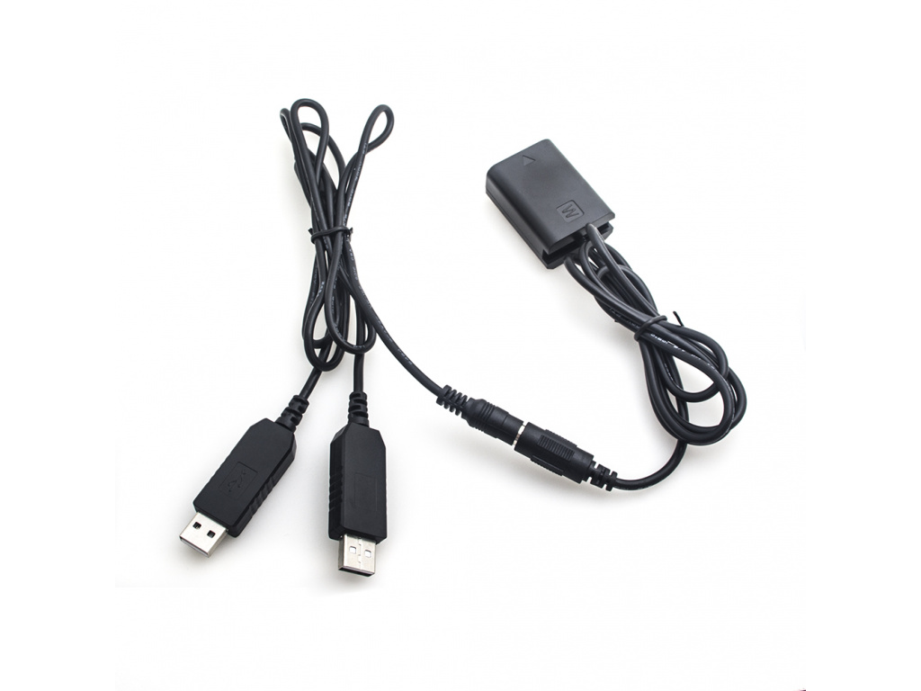 Dummy-Batterien werden für die so genannte unendliche Stromversorgung von Kameras verwendet. Dazu wird die Dummy-Taschenlampe anstelle eines Standardakkus in den Kameraplayer eingesetzt und das andere Ende kann an eine Batterie oder ein Gerät mit USB-Anschluss angeschlossen werden. Schnelle und sichere Möglichkeit, die Kamera ohne Batterien mit Strom zu versorgen.