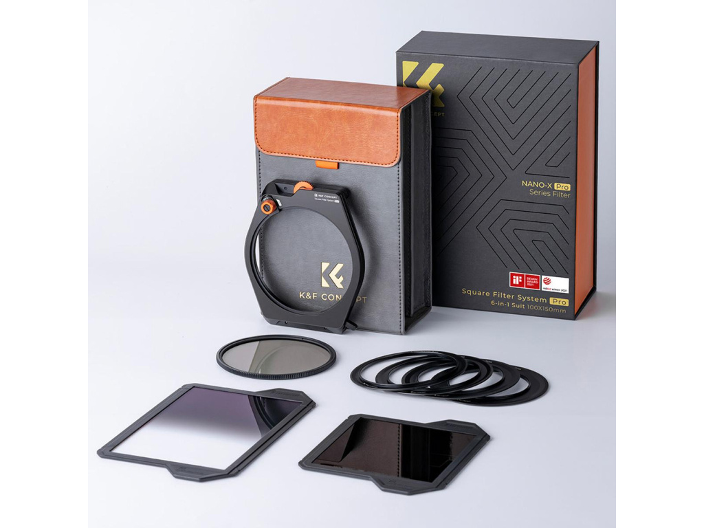 Einzigartiges Aktionsfilterset inklusive quadratischem Filterhaltesystem von K&F Concept. Das Set enthält 95mm CPL-Filter, ND1000, ND8 und ND64 (quadratisch) und 4 Ringe.