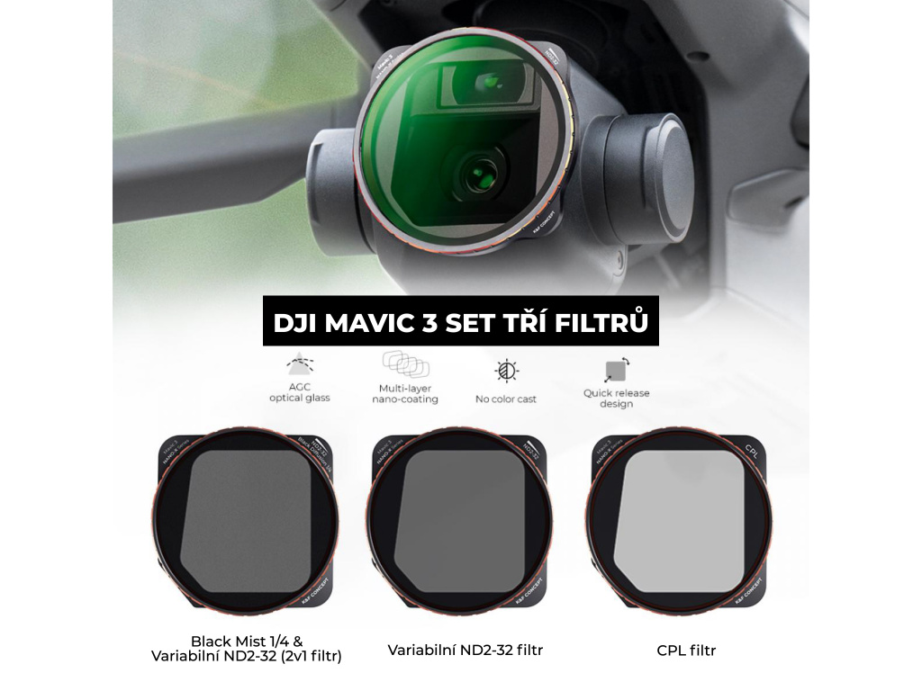 Set mit 3 Filtern für DJI Mavic 3 (ND2-32 / CPL / BlackMist) Profesionální Nano-X řada filtrů