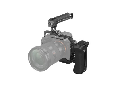 Basis-Kit für Sony Alpha7 IV und Sony Alpha7S III bestehend aus Kamerakäfig, HDMI-Klemme und oberem NATO-Griff und Seitengriff von SmallRig 3668B.