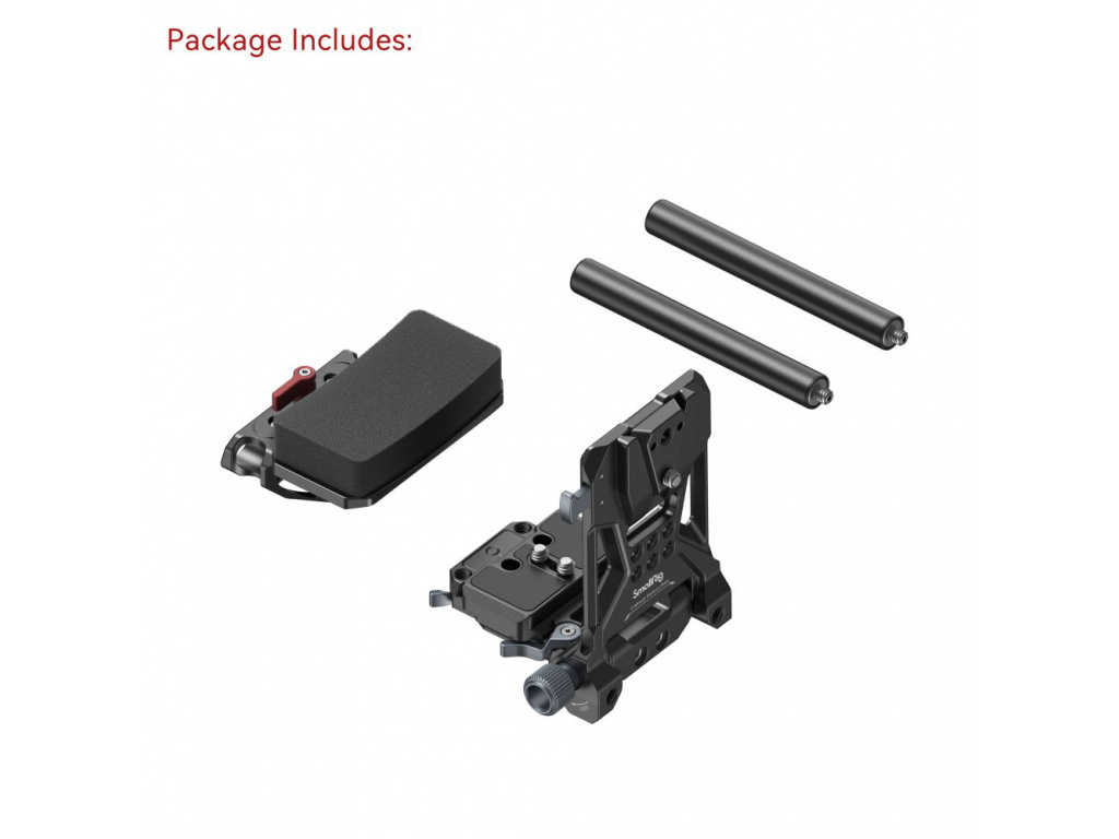 Das SmallRig Advanced Compact V-Mount Battery Mounting System 4063 ist eine kompakte, leichte und praktische All-in-One-Montagelösung für V-Mount-Akkus. Das Kit besteht aus einer V-Mount-Akkuplatte, einer Arca-Schnellwechselplatte, einer V-Mount-Platte, Stangen mit 15 mm Durchmesser und einem Brustpolster. Insbesondere kann die Grundplatte für spiegellose Kameras/DSLRs verschiedener Größen erweitert werden, was durch eine werkzeuglose, schnelle und zeitsparende Installation und Einrichtung unterstützt wird. Zusätzlich zum Käfig mit eingebauter Arca-Platte kann er über die Arca-Swiss-Schnellwechselplatte direkt die Kamera und Gimbals der DJI RS-Serie tragen. Auch der Wechsel zwischen Hand- und Stativaufnahmen wird durch die Arca-Bodenplatte erleichtert. Die um 90 Grad schwenkbare Akkuplatte mit V-Mount lässt viel Platz für einen aufklappbaren Bildschirm mit Rotationsdämpfung, damit das Gerät nicht herunterfällt. Er kann für mehr Kompaktheit und Tragbarkeit zusammengeklappt werden. Darüber hinaus befindet sich am Ende der 15-mm-Stangen ein Brustpolster, das dem Handheld Stabilität verleiht.