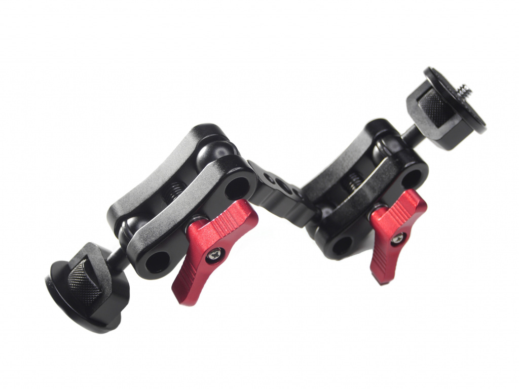 Präzisions-Doppelgelenkarm zur Befestigung von Bildschirmen, Powerbanks oder anderem Zubehör in der Welt der Kameras und Camcorder. Ideal für die Montage an Kamerakäfigen, Rigs...