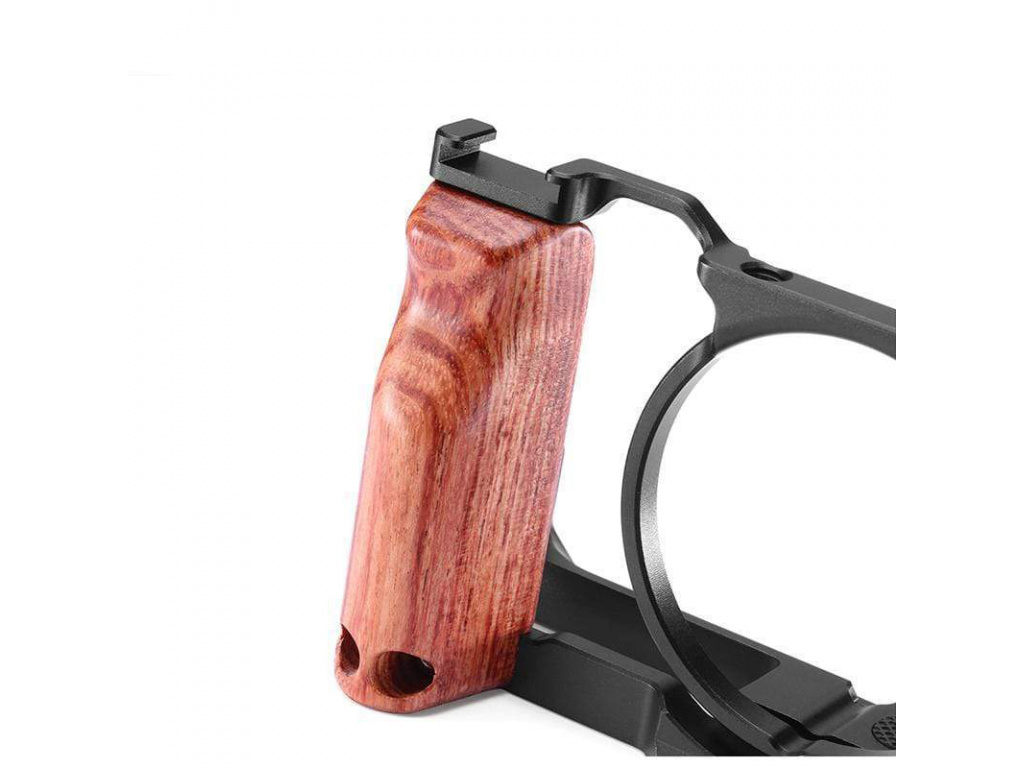 Speziell angefertigter Kamerakäfig für die Modelle Sony RX100 VI und VII. Der Käfig wird mit einer Klemme direkt am eingebauten Kameraobjektiv befestigt. Käfig mit Schlitten, 1/4"-Gewinde und ARRI-Aufnahmegewinde zur Befestigung von externem Zubehör. Der untere Teil ist nach dem Arca-Swiss-Standard geformt, so dass Sie den gesamten Käfig mit dem Arca-Swiss-Schnellkupplungssystem an ein Stativ klemmen oder ihn mit einem klassischen 1/4"-Gewinde an einer beliebigen Schnellkupplungsplatte befestigen können. auf der rechten Seite des Käfigs befindet sich ein Holzgriff, der sich perfekt an die Form der Kamera anpasst und ein wesentlich komfortableres Aufnahmeerlebnis ermöglicht.