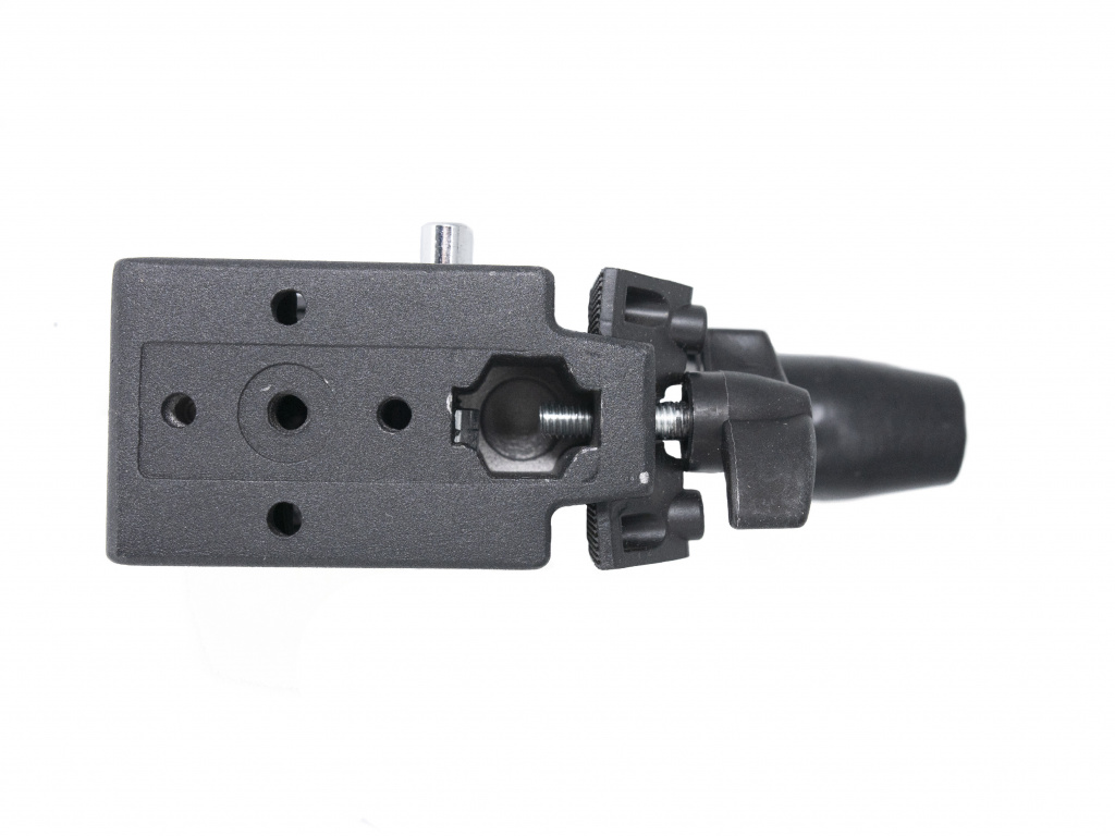 Klemme mit einer Tragfähigkeit von 10 kg für die Befestigung von schwerem externen Zubehör wie Monitore, Aufnahmegeräte, Empfänger oder Mikrofone an stabförmigen Zubehörteilen (max. Durchmesser 45 mm). Um ein Zubehörteil an die Klemme anzuschließen, benötigen Sie .