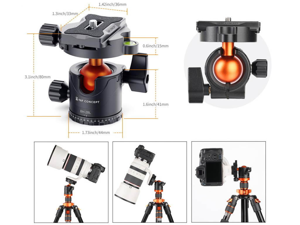KF Concept BH-28L Panorama Kugelkopf mit 10 kg Traglast und Wasserwaage KF31.023V3