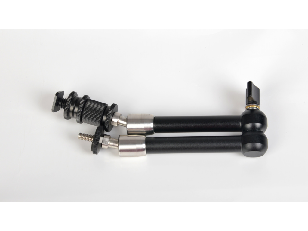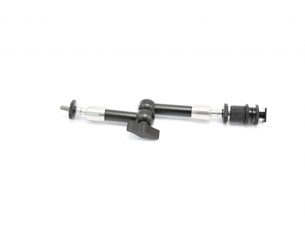 Für die Verwendung mit Atomos-Recordern und anderen Vorschaumonitoren oder Leuchten werden sicher viele von euch ein stärkeres Gelenk verwenden wollen. Die 7-Zoll-Standardgröße ist ideal für die bequeme Aufstellung von Monitoren oder Zubehör und die Einhaltung eines geringeren Abstands (ideal für Gimbals). Es ist nicht immer von Vorteil, wenn der magische Arm länger als 7" ist. Darüber hinaus verfügt der magische Arm über eine flache, seitliche Feststellschraube, die wesentlich komfortabler ist als die zweite Art des magischen Arms auf unserer Website.