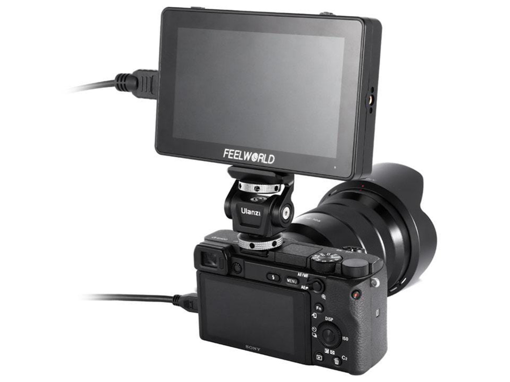 Kompakter Halter für 5" und 7" Vorschaumonitore mit einer maximalen Tragfähigkeit von 1,2 kg. Der Halter ist in der Drehachse um 360° und in der Hubachse um 180° frei verstellbar. Der Einbau erfolgt direkt in den Kameraschlitten, und um das Schloss perfekt festzuziehen, finden Sie in der Verpackung einen Inbusschlüssel, der bequem in das Loch der Feststellschraube eingeführt werden kann. Die Oberseite des Monitor-Touch ist gummiert, so dass Sie sich keine Sorgen machen müssen, Ihren Monitor zu zerkratzen.