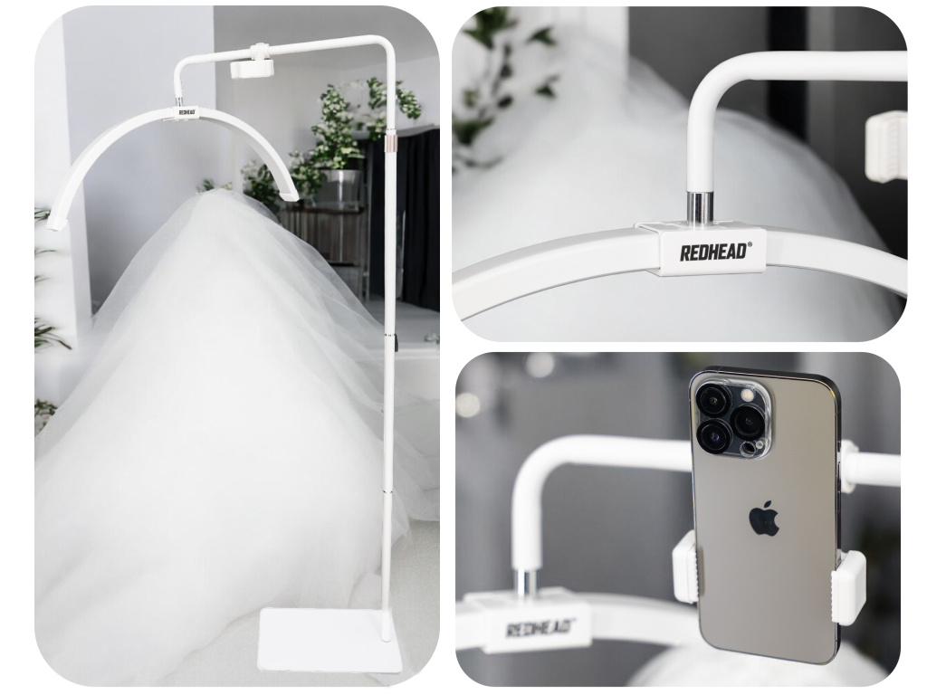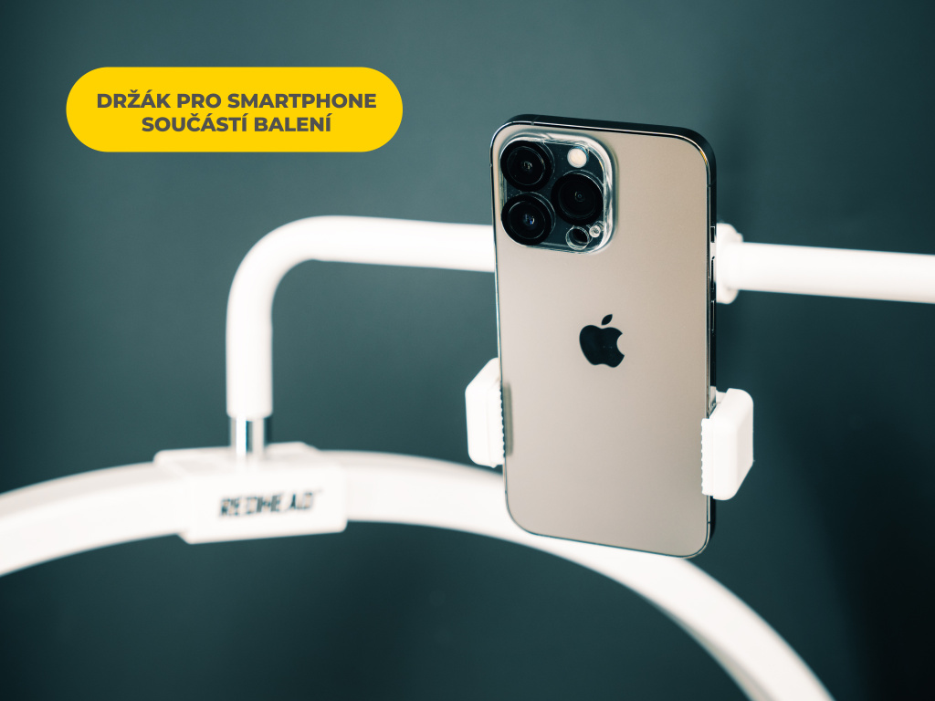 18" Ringlicht mit einstellbarer Temperatur zwischen 3000-6500K. Die Lichtintensität kann zwischen 10-100% eingestellt werden. Inklusive 3 Smartphone-Halterungen.