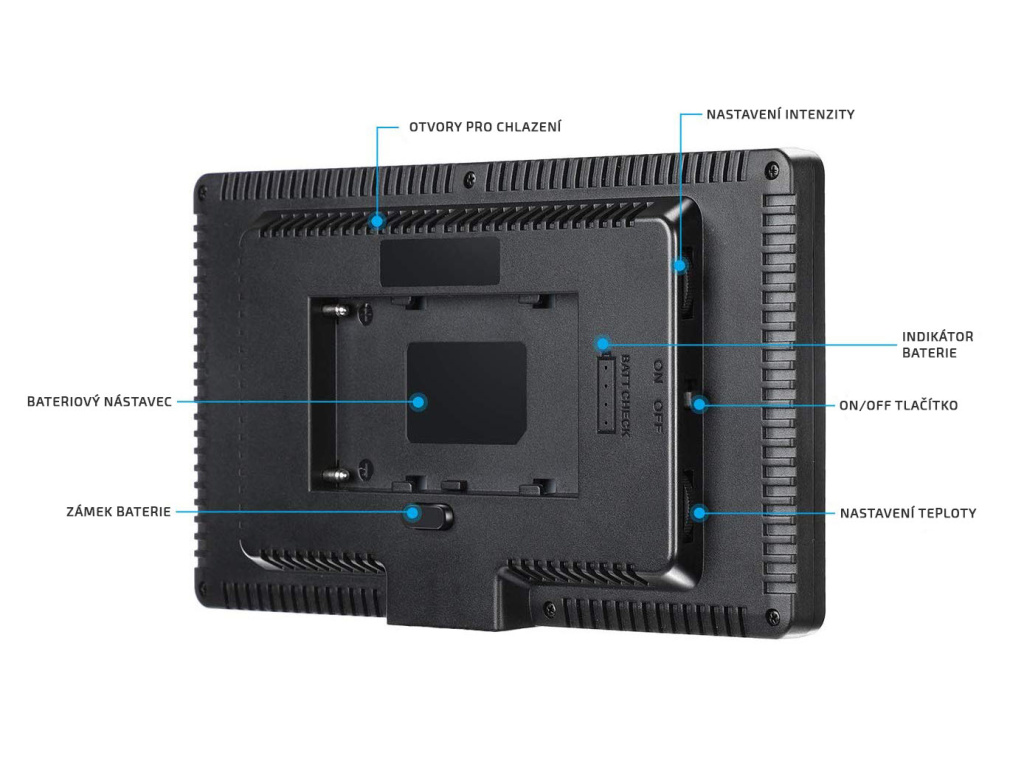 Kompaktní kamerové Bi-Color LED světlo s možnosti nastavení teploty barev a intenzity. Napájení je realizováno pomocí jakékoliv NP-F baterie.