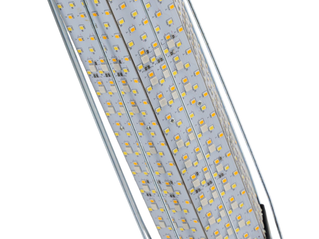 Am stärksten ist das Licht im weiß-gelben Modus, in dem eine Leuchte eine Leistung von bis zu 120 W hat. Die Temperatureinstellung erfolgt in Schritten von 250-300K (pro Schalter). Sie können die Temperatur direkt auf der Rückseite der Leuchte oder mit der Fernbedienung einstellen.