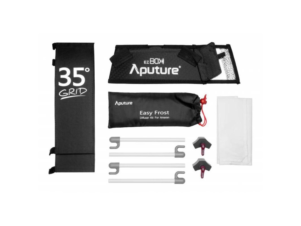 Die Aputure EZ BOX + Grid Softbox ist ein Modifier-Kit für Amaran AL-528 und HR672 LED-Leuchten. Das Kit besteht aus drei Komponenten (Diffusor, Softbox und Gitter), die einfach an den oben genannten Leuchten angebracht werden können.