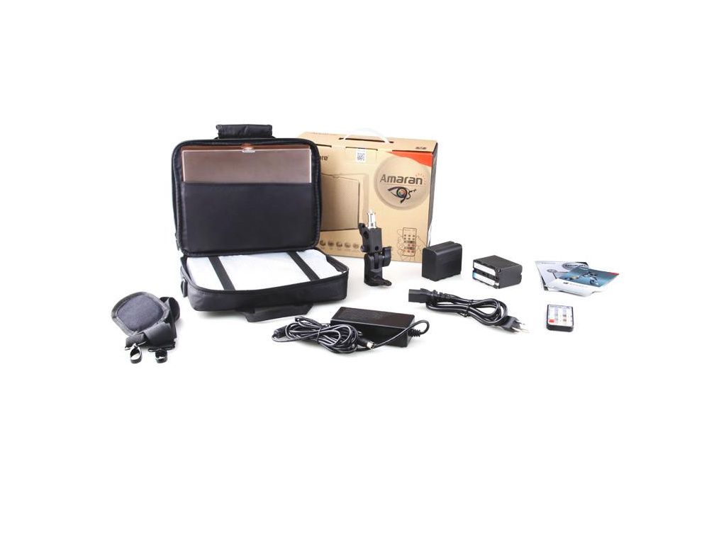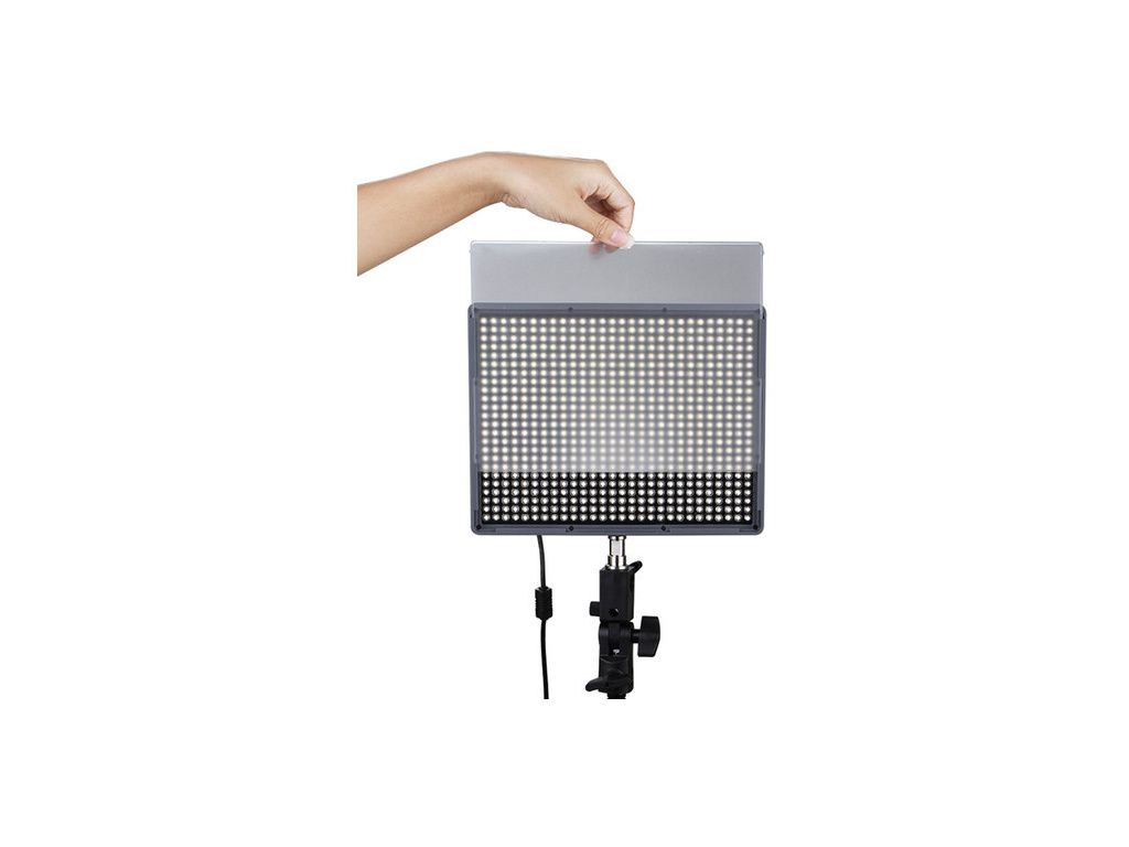 Die LED-Leuchte kann über eine Fernbedienung (2,4 GHz, im Lieferumfang enthalten) gesteuert werden, die in 4 Gruppen und 3 Kanälen leicht konfigurierbar ist. Mit dem Regler kann auch die Leistung von 10 bis 99 % eingestellt werden. Zum Lieferumfang gehört auch eine Halterung, die an jedem Stativ befestigt werden kann und die es Ihnen ermöglicht, weiteres Zubehör zur Lichtstreuung (Schirm) anzubringen. Die Leuchte kann sowohl senkrecht als auch waagerecht montiert werden, da sie über insgesamt drei Ausleger verfügt. Die Stromversorgung kann über die wiederaufladbaren Akkus NP-F550/F570/F770/F960/F970 oder über einen Netzadapter erfolgen. Die Leuchte enthält auch einen Diffusionsfilter und einen Filter für warme Farben.