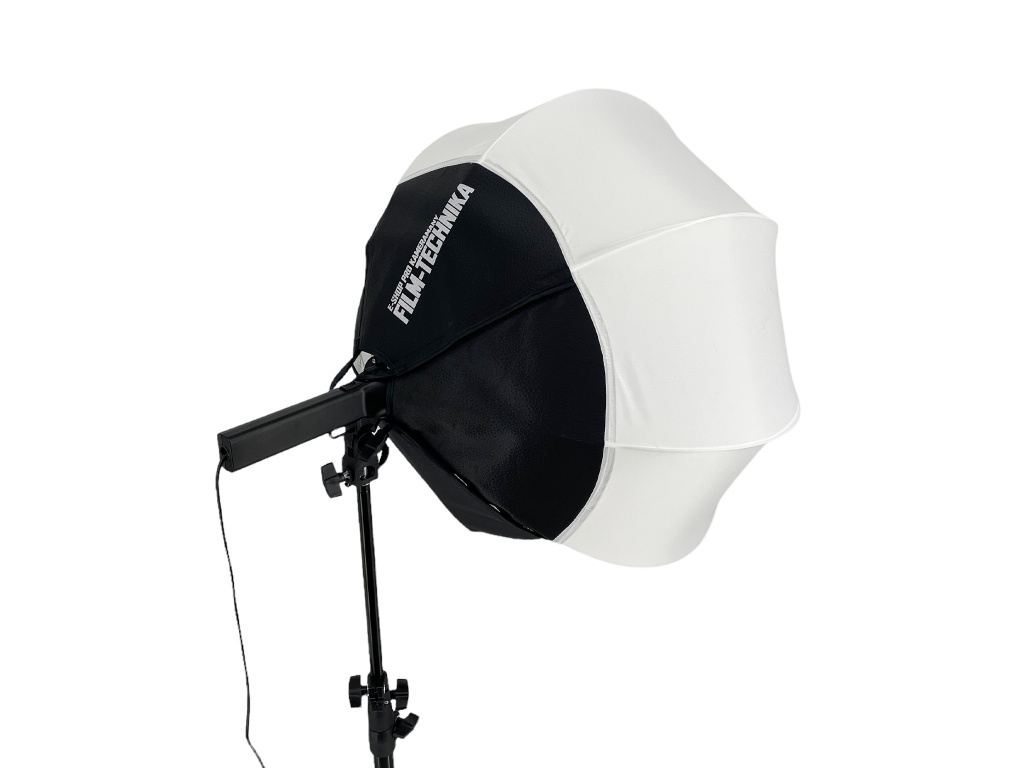 "Laterne" Softbox ist an sich eine ziemlich teure Lösung für professionelle Beleuchter. Unser Set ist eine erschwingliche Lösung mit Licht und Stativ. Allein die Lichtleistung entspricht der einer 200-W-Glühbirne.