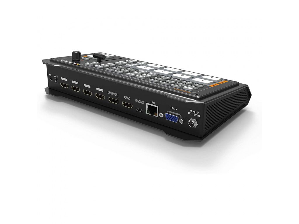 Verwenden Sie den Vierkanal-USB-Typ-B-Eingang des HVS040U Mini, um Videos mit bis zu 1080p60 an einen Linux- oder Windows-Computer zu streamen, und den RJ45-Anschluss für die Fernsteuerung über einen PC. Zu den Audiofunktionen gehören ein integrierter HDMI-Eingang, 3,5-mm- und RCA-Eingänge sowie HDMI- und 3,5-mm-Ausgänge. Die FTB-Funktion (Fade to Black) bietet eine schnelle Lösung für Notschnitte.