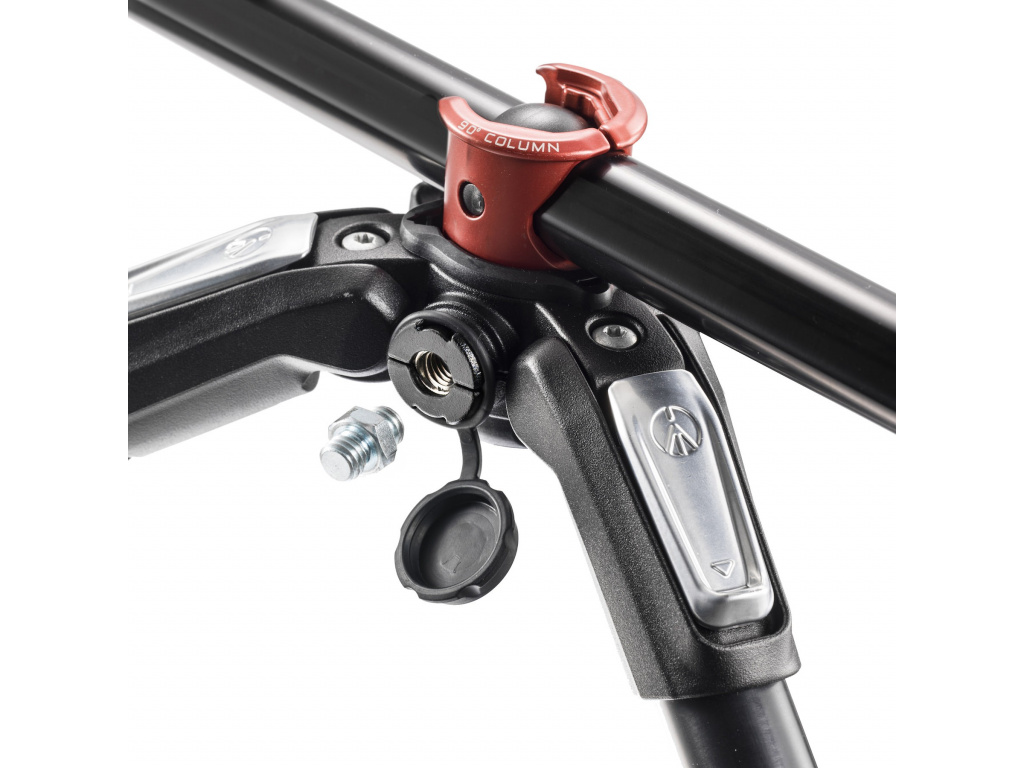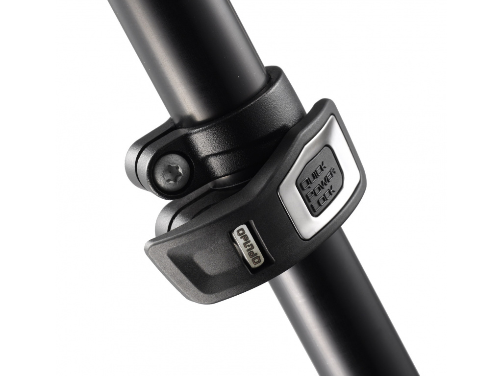 Der Mechanismus zum Kippen der Mittelstange ist im oberen Gussteil verborgen. Dadurch bleiben die kompakten Abmessungen des Stativs erhalten. Um die geringe Länge des Stativs im zusammengeklappten Zustand zu gewährleisten, sind die Beine aus vier Teilen zusammengesetzt. Sie sind aus einer leichten, aber sehr stabilen Aluminiumlegierung gefertigt. Jeder Teil des Stativs kann separat aus- und eingefahren werden. Die einzelnen Beinteile werden mit ergonomischen QPL QuickPowerLock-Hebeln gesichert. Diese können leicht mit einer Hand bedient werden. Die Verriegelung ist stark genug, um eine zuverlässige Stabilität der gewählten Position zu gewährleisten. Das obere Gussteil ist mit einem 3/8"-Easy-Link-Gewinde ausgestattet. Mit dem Easy Link kann weiteres Zubehör am Stativ befestigt werden, z.B. LED-Licht, Blitz, Reflektor usw. oder einen Arm oder eine Klemme anschrauben. Damit wird das Stativ zu einem kleinen mobilen Studio.