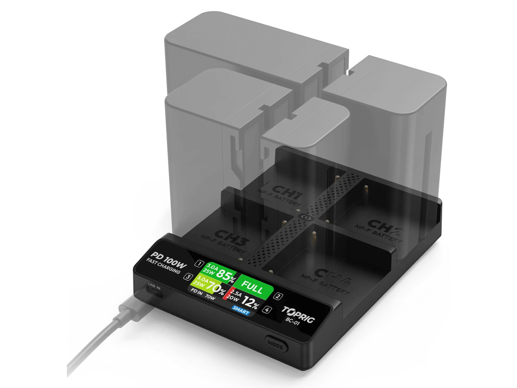 Accsoon TOPRIG 100W Vierkanal-LCD-Ladegerät für Sony NP-F Akkus