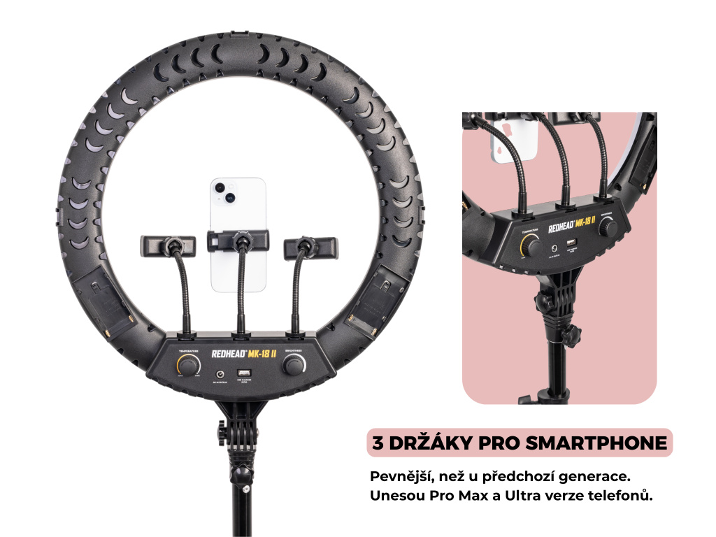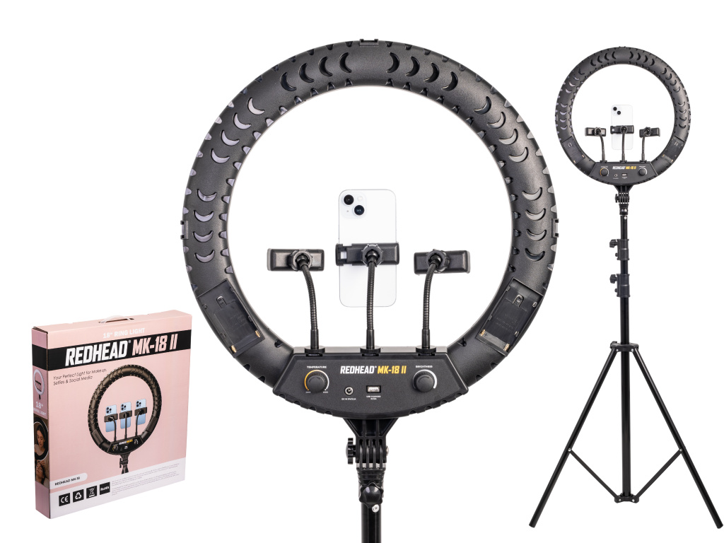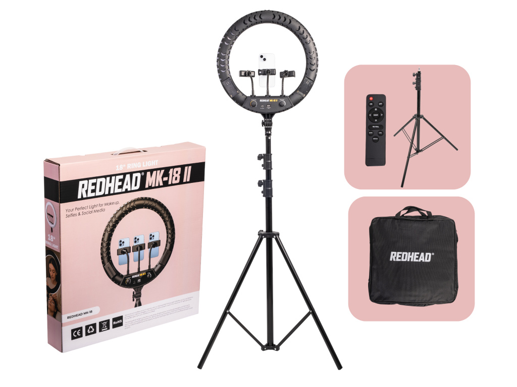 18" (46cm) rundes LED-Ringlicht mit 2,6m Stativ Redhead MK-18 II Výkon 64W, dálkový ovladač, brašna